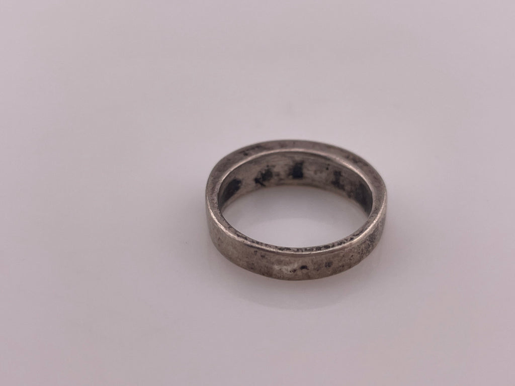 The silver is scratched from wear and storage, as is typical with pre-owned jewelry. This ring has tarnishing and patina that may not come off when polished. The stones do not completely fill in the settings so there are gaps around the stones.