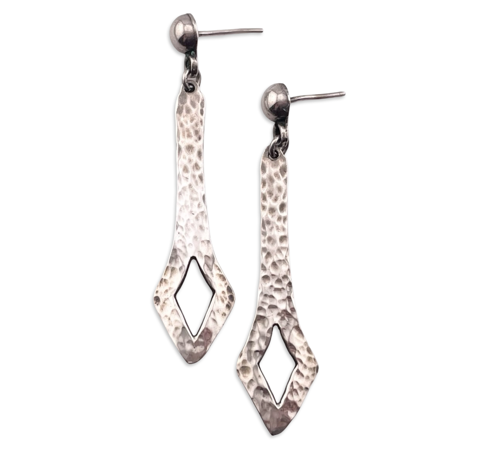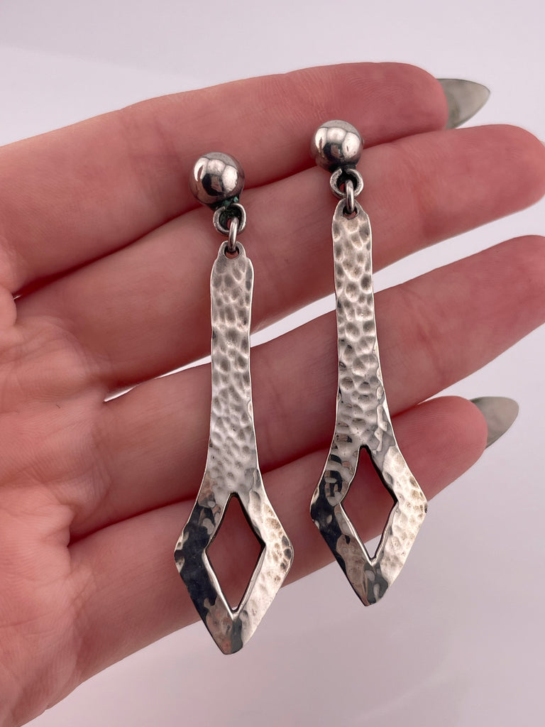sterling silver 2-1/2" hammered post dangle earrings