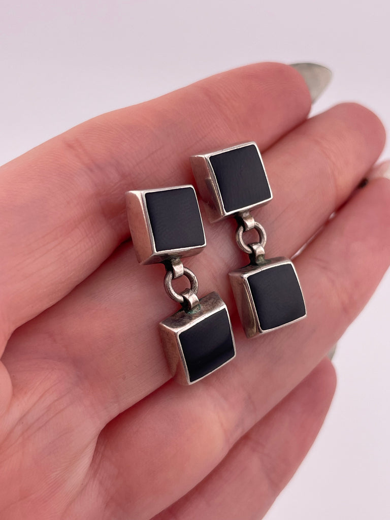 sterling silver black resin post dangle post earrings