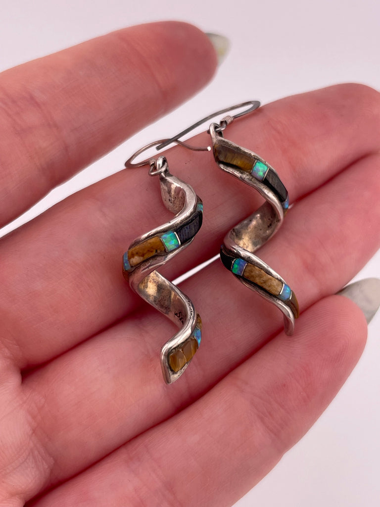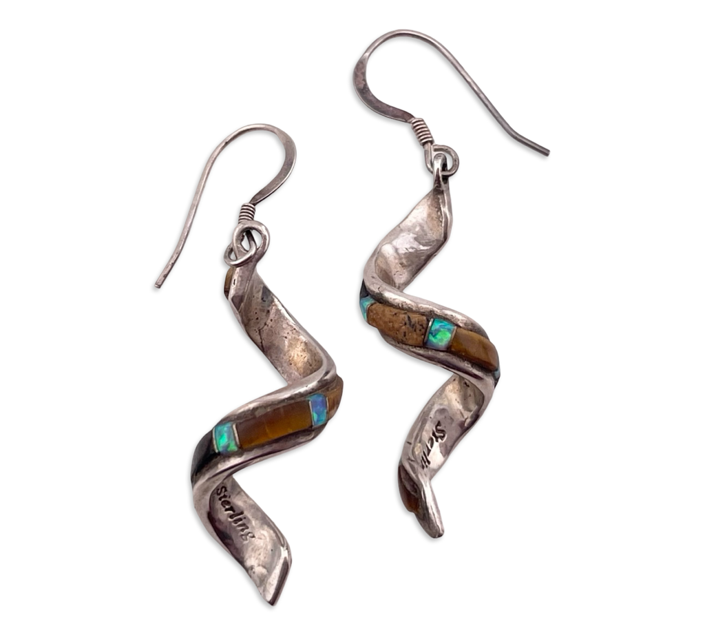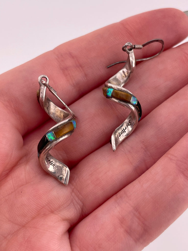sterling silver spiral multi-stone hook dangle earrings