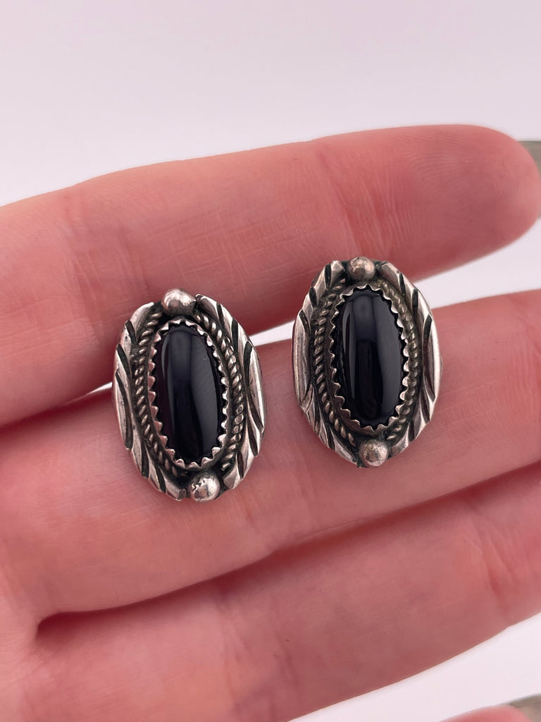 sterling silver onyx post earrings