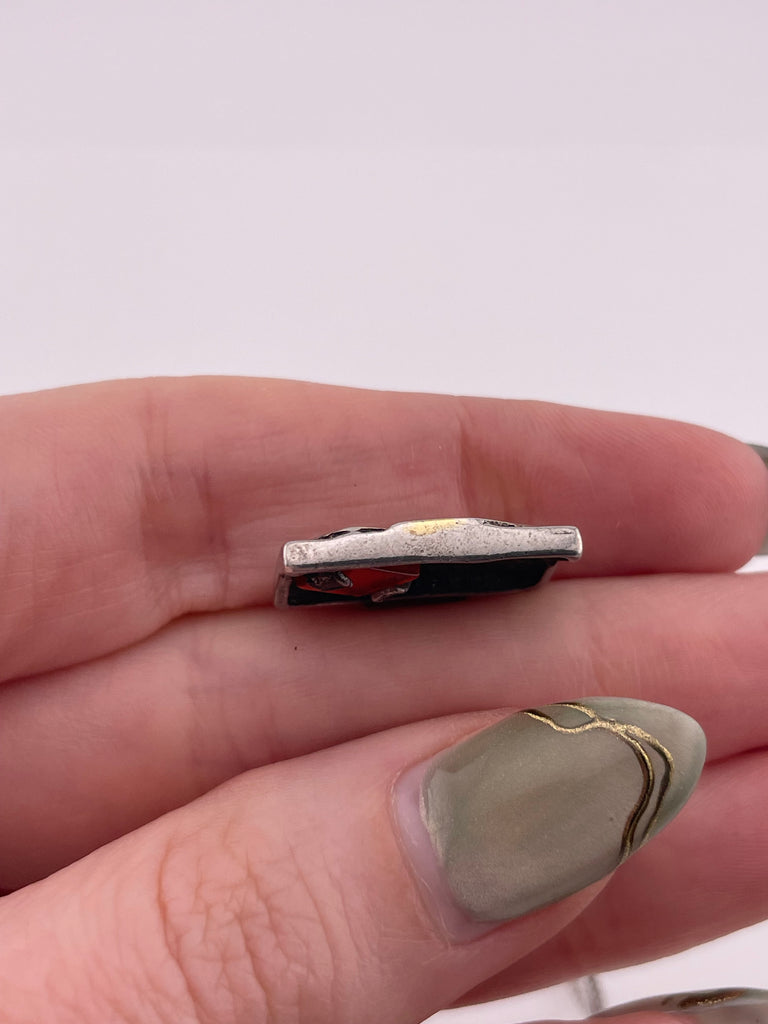 This has scratches to the silver from previous wear, and tarnishing that may not come off when polished.