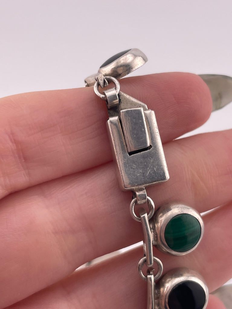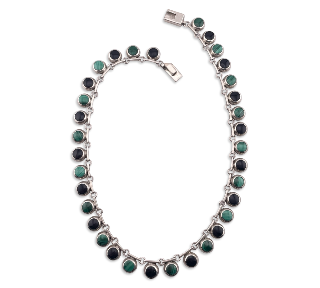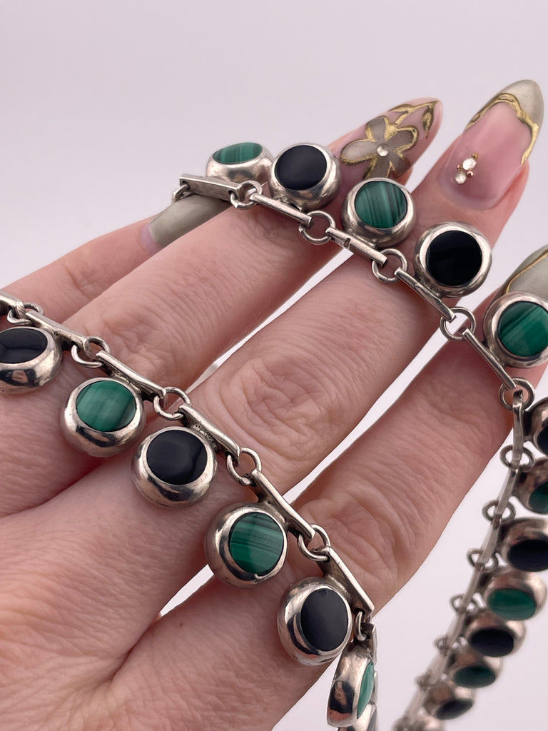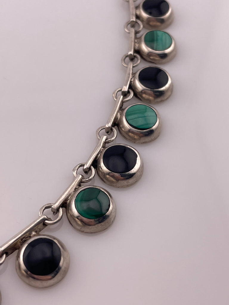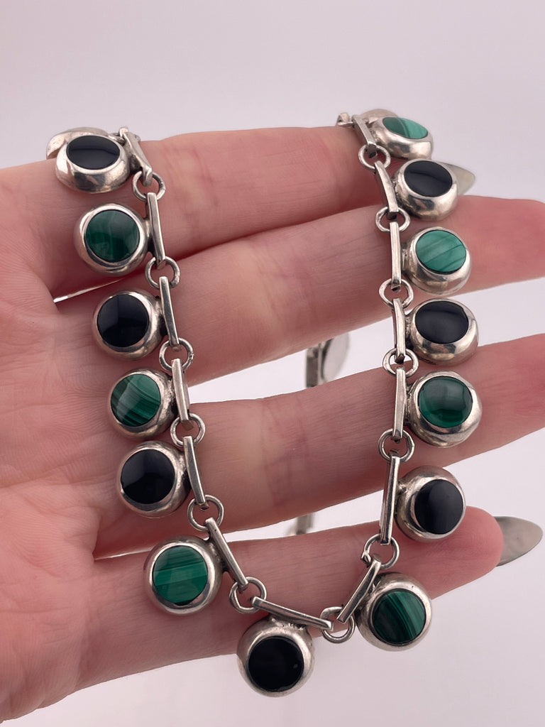 sterling silver Mexican malachite & onyx collar necklace