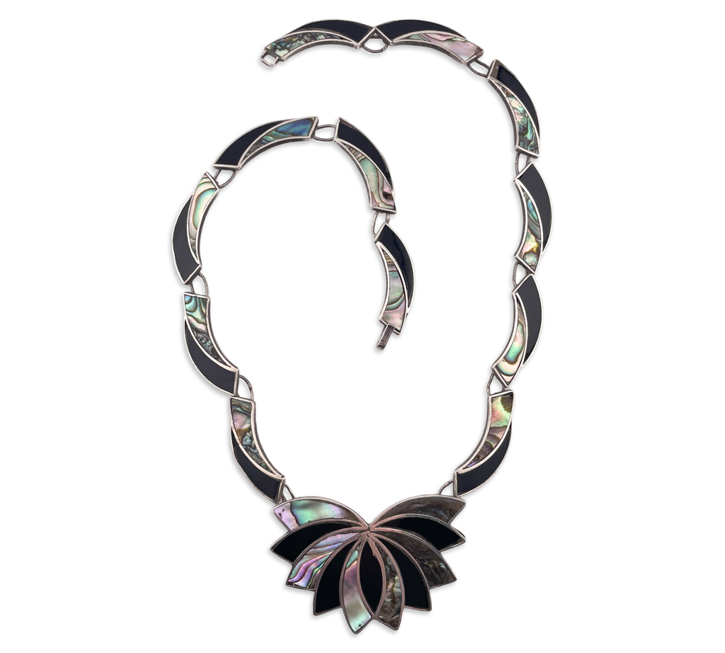 sterling silver Mexican onyx & abalone necklace **AS IS**