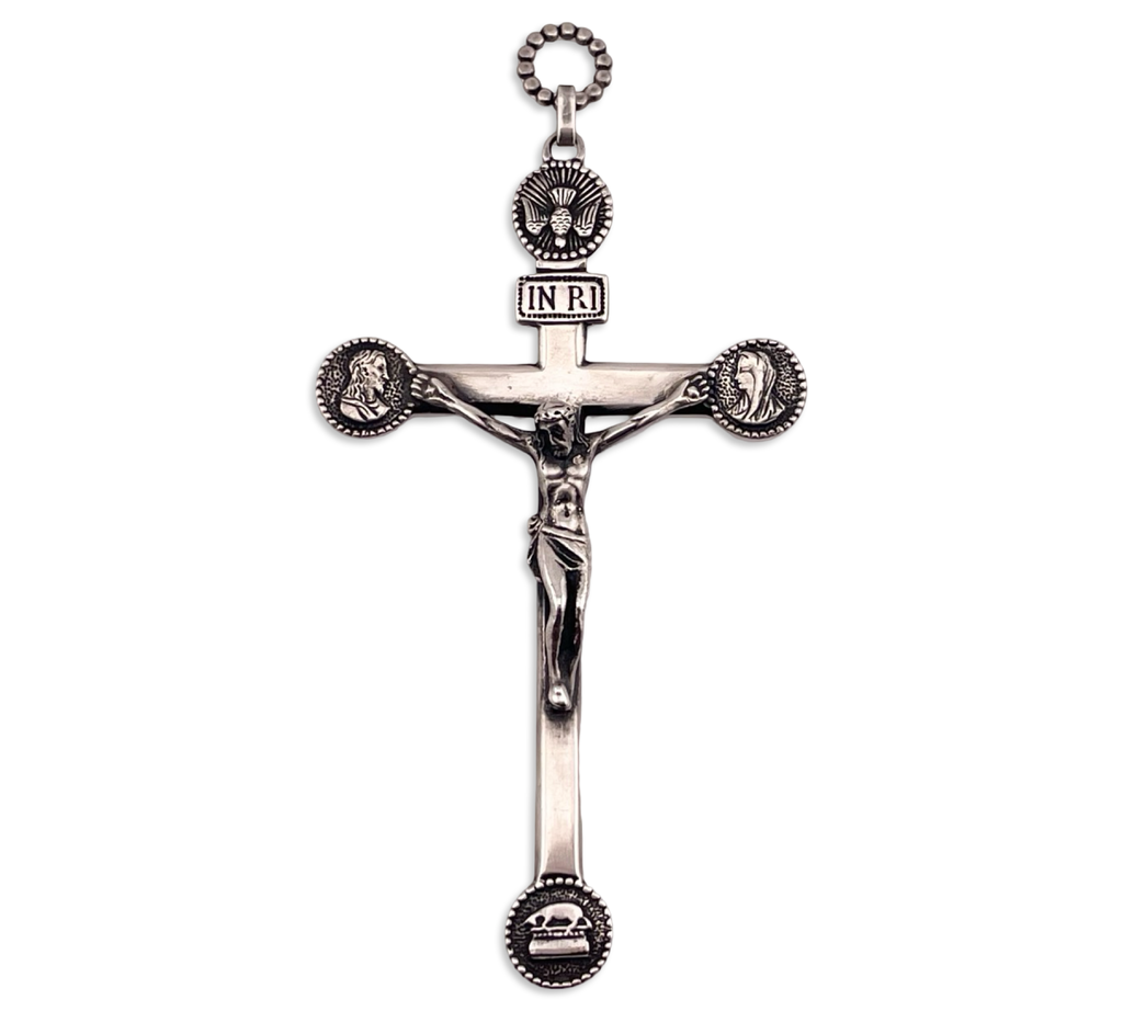 sterling silver large Parenti Sisters engraved bishop's crucifix cross pendant
