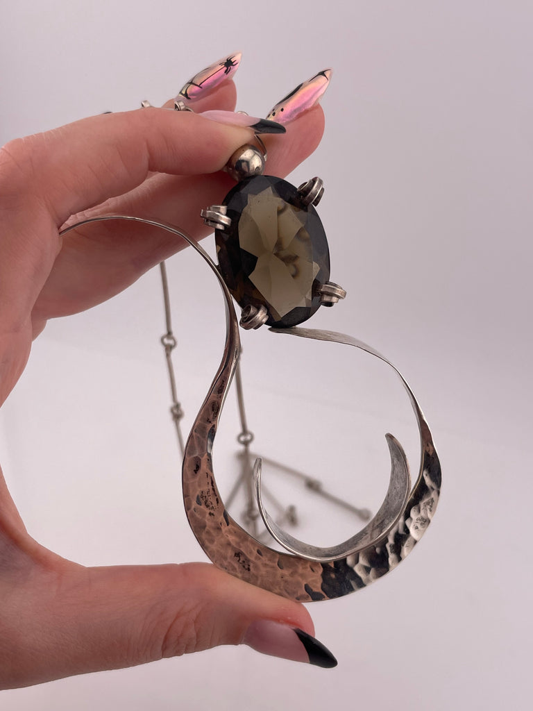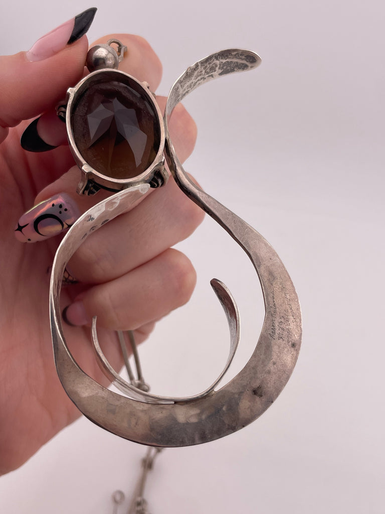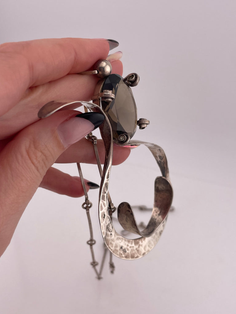 sterling silver rare Aaron Rubenstein smokey topaz necklace