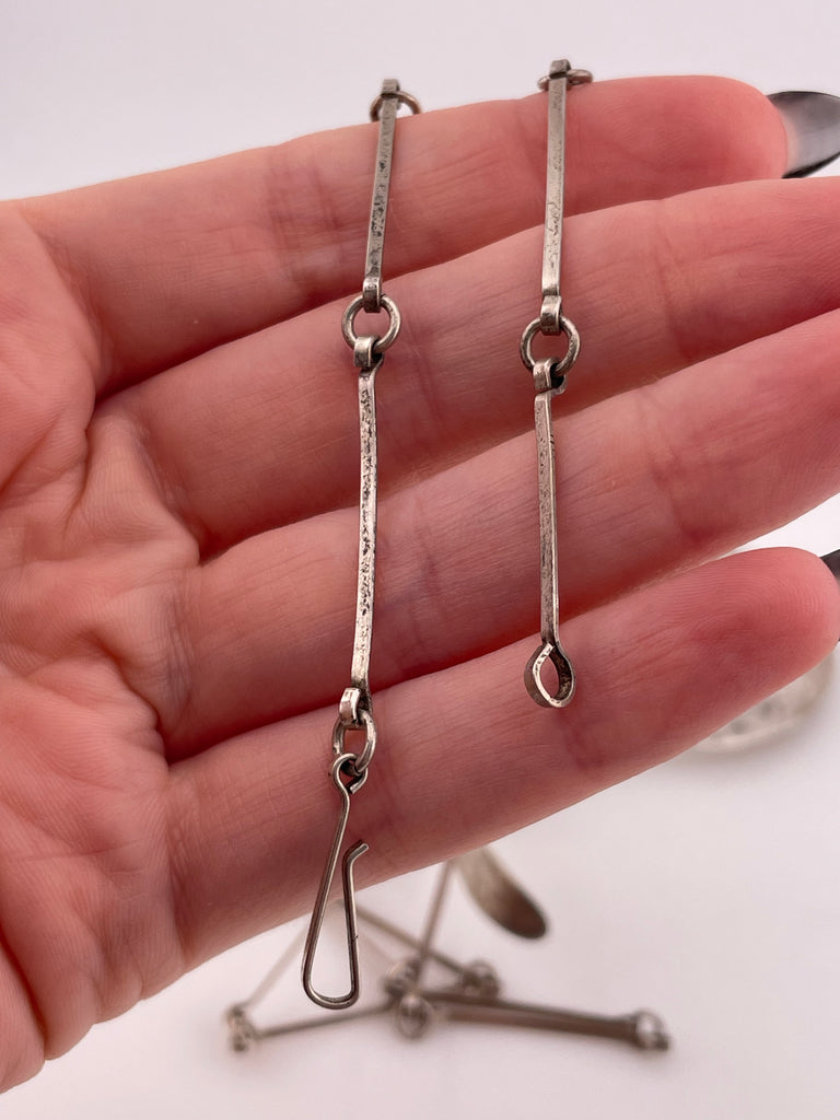 The silver is scratched from wear and storage, as is typical with pre-owned jewelry. This piece of silver has tarnishing and patina that may not come off when polished.
