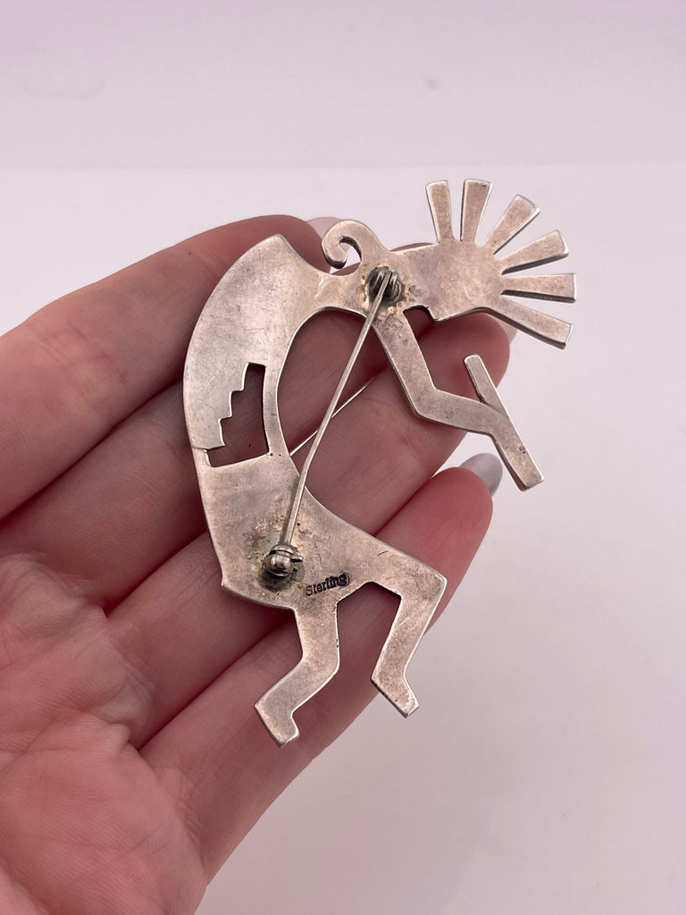This brooch has scratches to the silver from previous wear, and tarnishing that may not come off when polished.