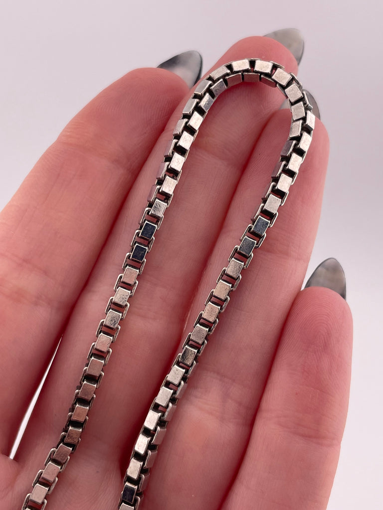 The silver is scratched from wear and storage, as is typical with pre-owned jewelry. This item has tarnishing and patina that may not come off when polished.