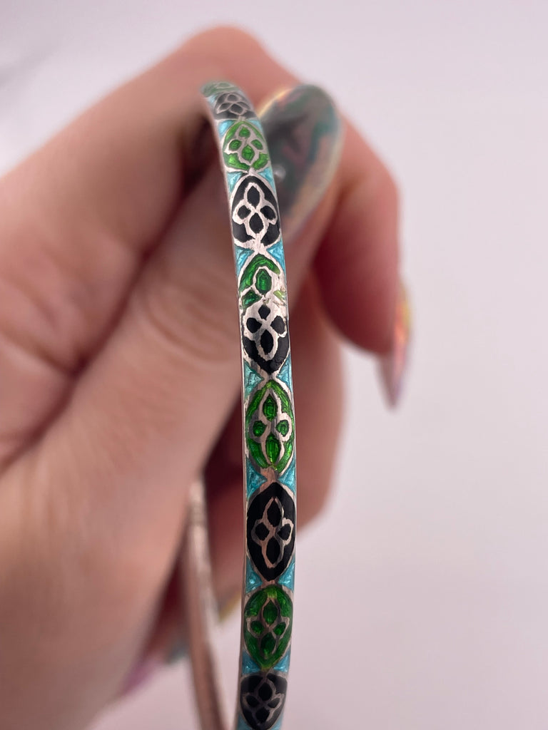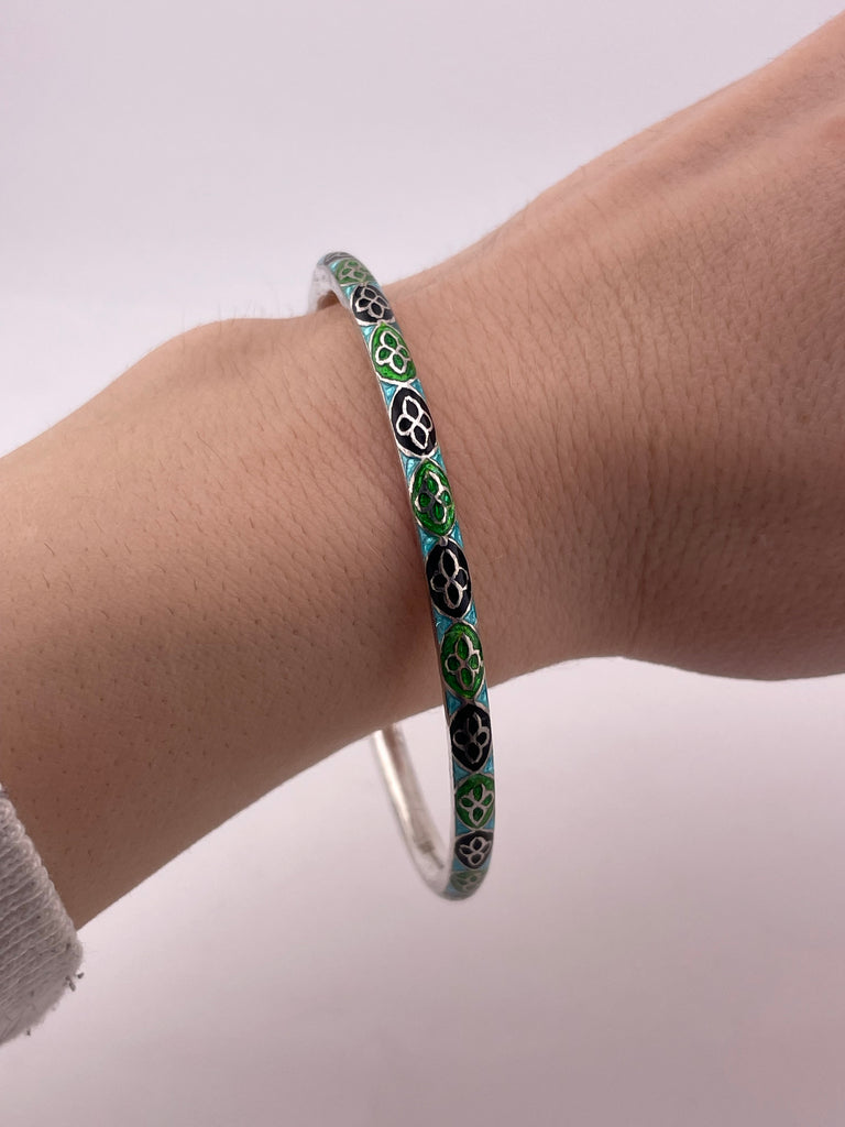 sterling silver 8" enamel bangle bracelet
