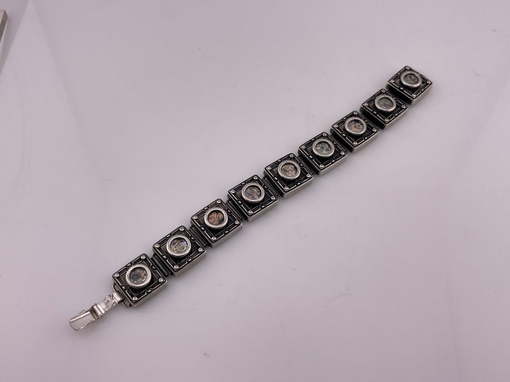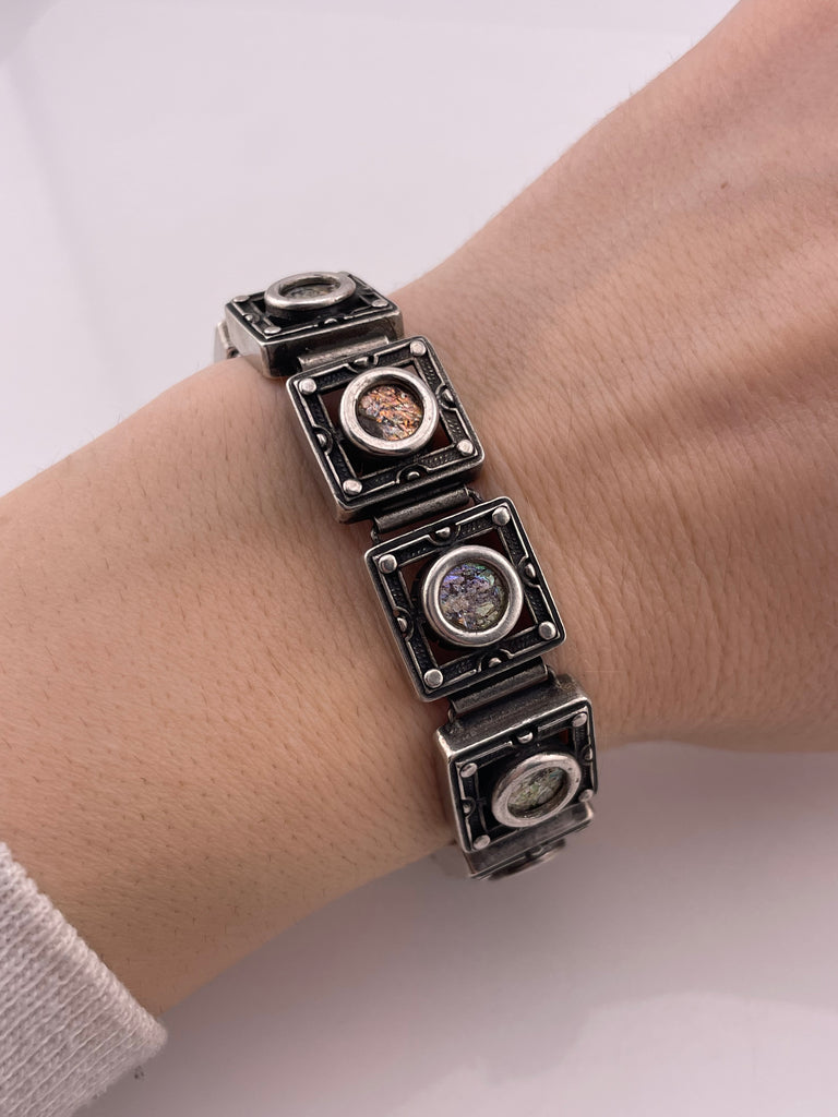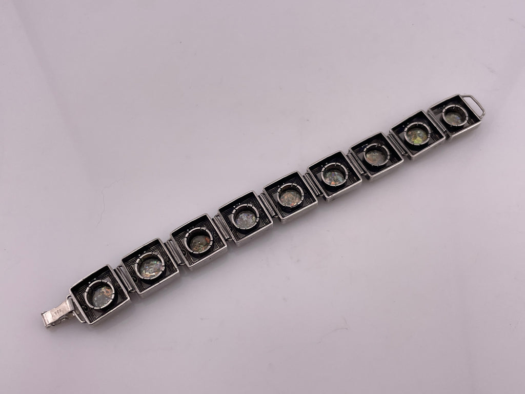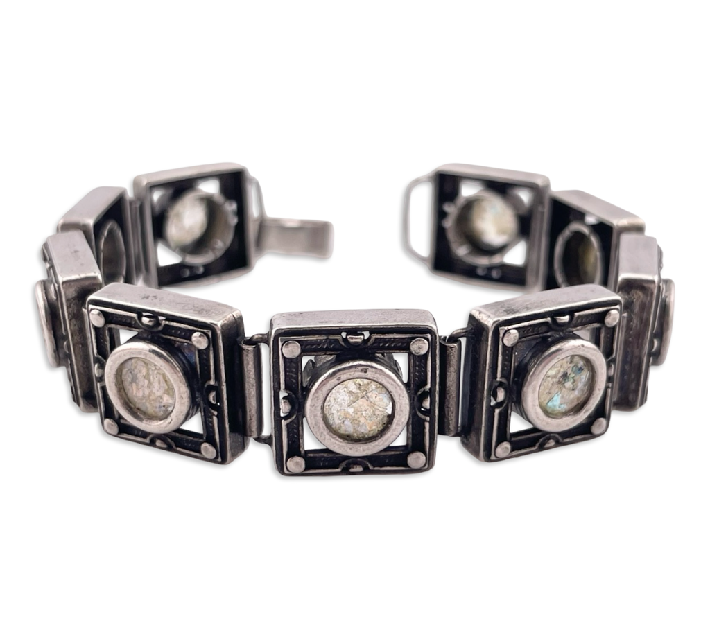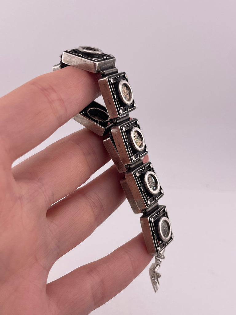 The silver is scratched from wear and storage, as is typical with pre-owned jewelry. This item has tarnishing and patina that may not come off when polished.