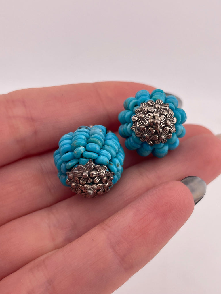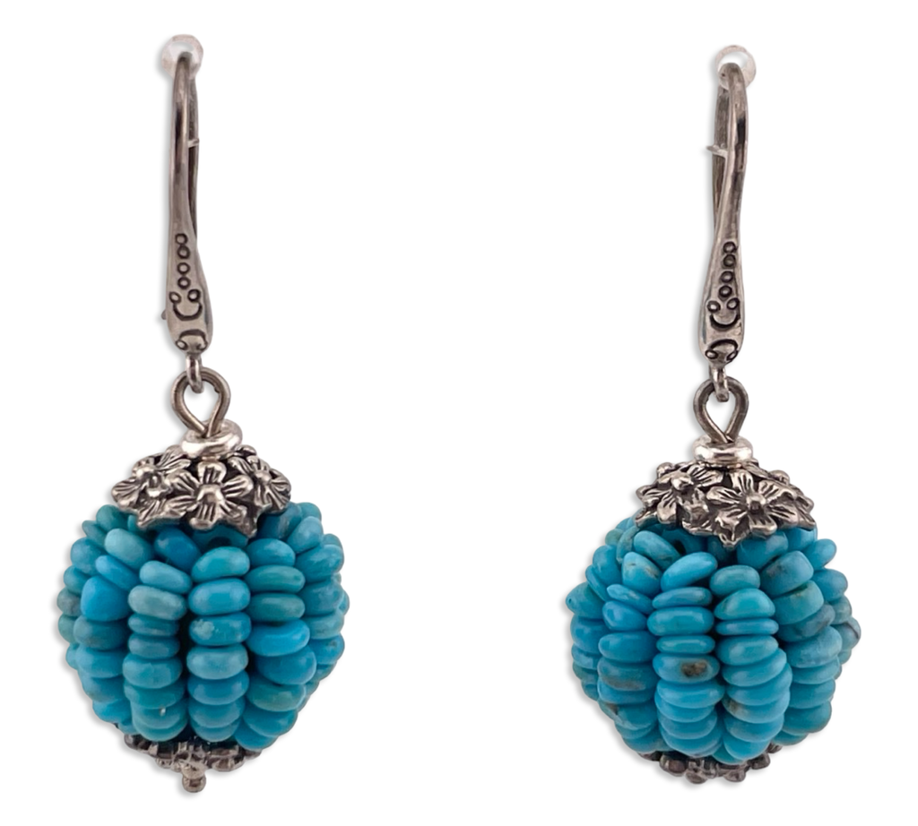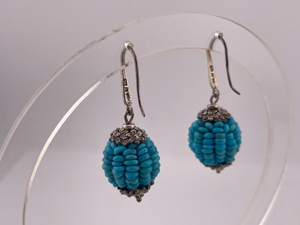 sterling silver beaded stabilized turquoise flower dangle earrings