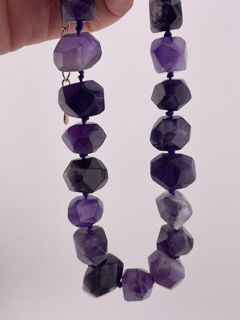 chunky beaded amethyst strand necklace w/ sterling silver hardware