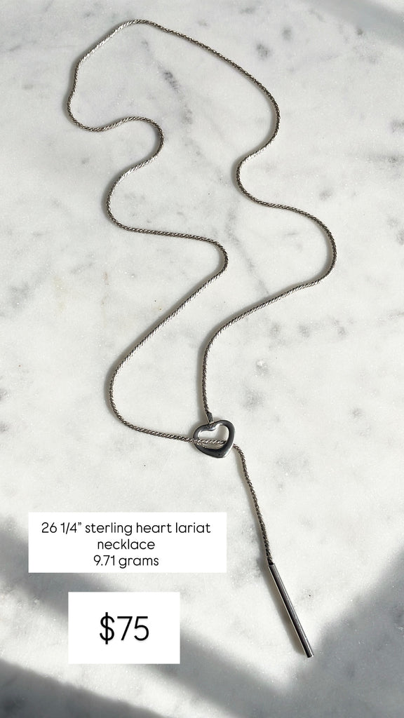 RESERVED PRIVATE LISTING -- sterling silver heart lariat necklace B18