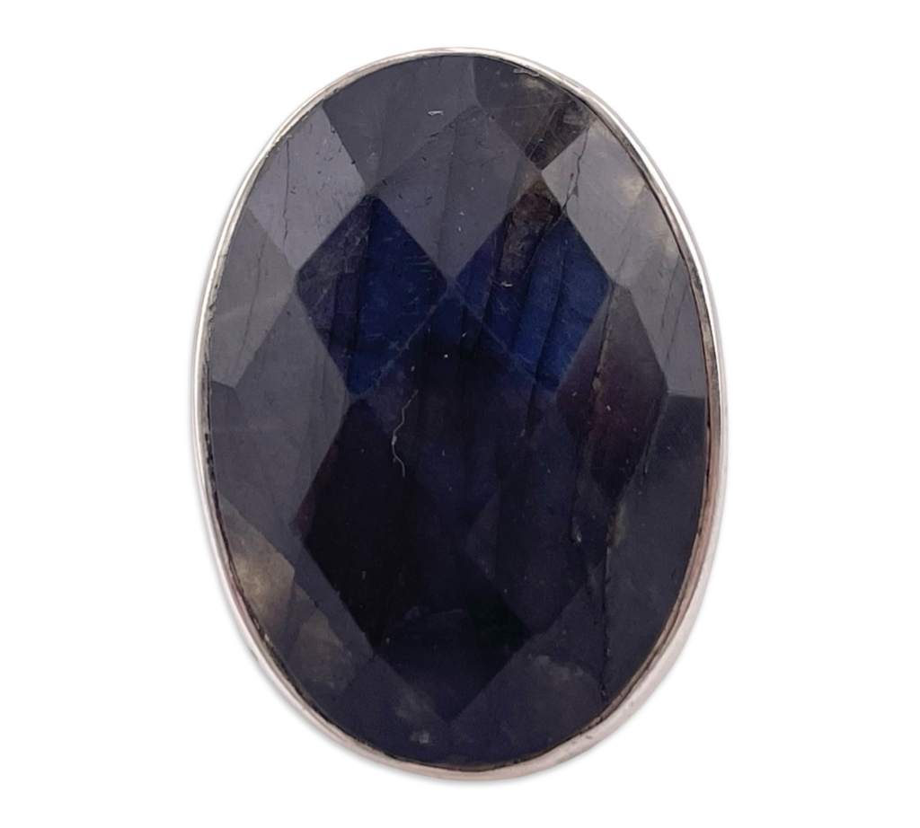 The silver is scratched from wear and storage, as is typical with pre-owned jewelry. This ring has tarnishing and patina that may not come off when polished. The stone has scratches and tiny chips from previous wear, and natural imperfections.