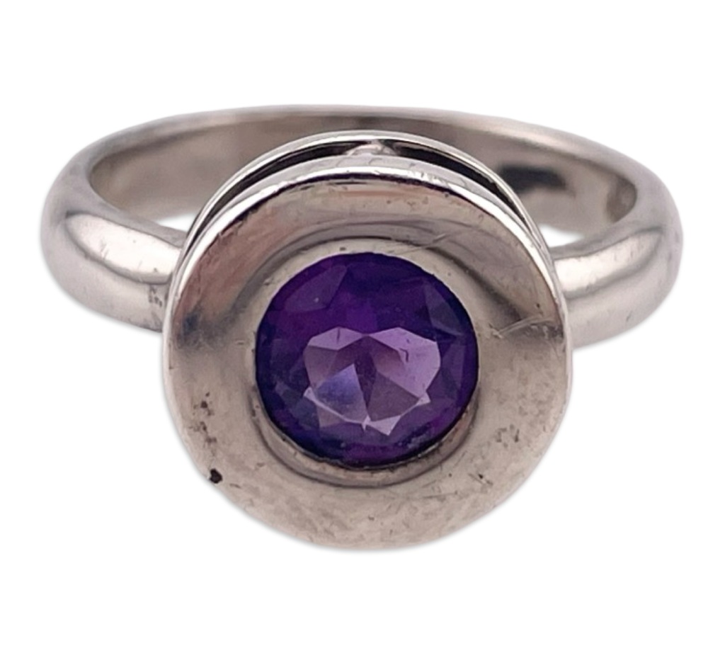 The silver is scratched from wear and storage, as is typical with pre-owned jewelry. This ring has tarnishing and patina that may not come off when polished.
