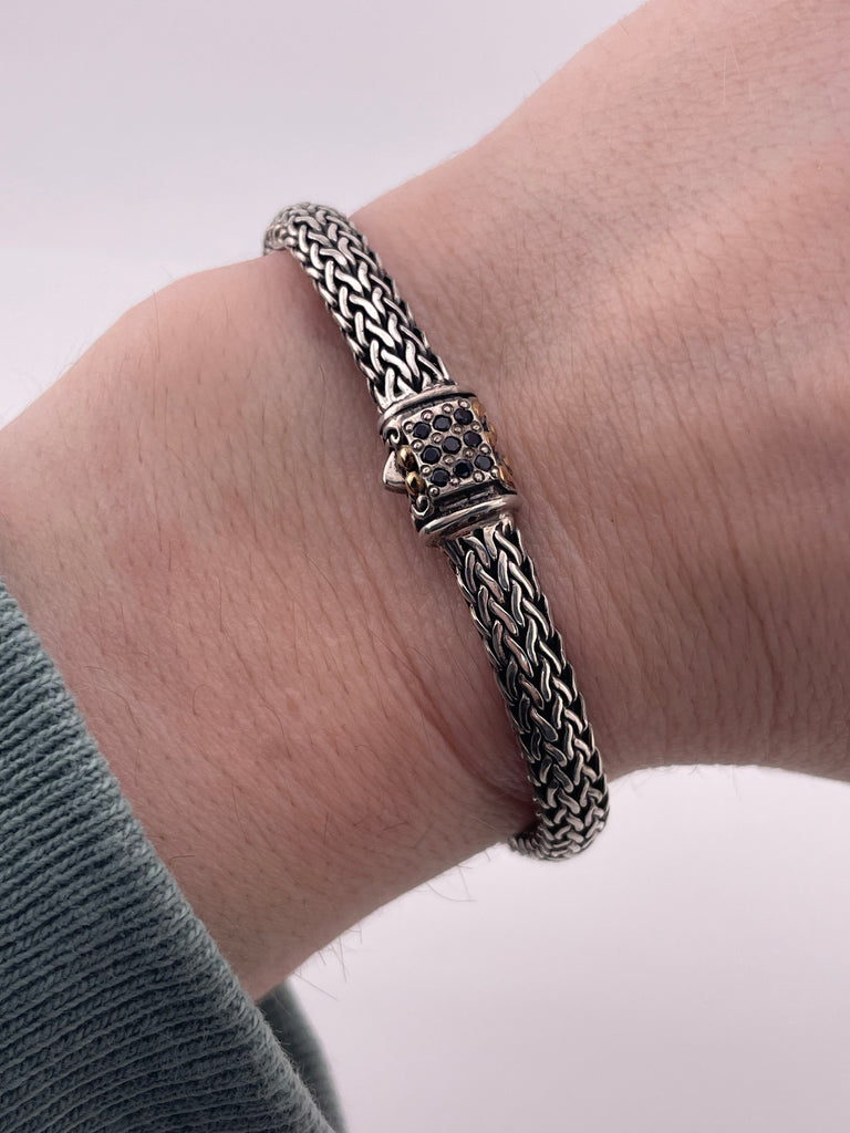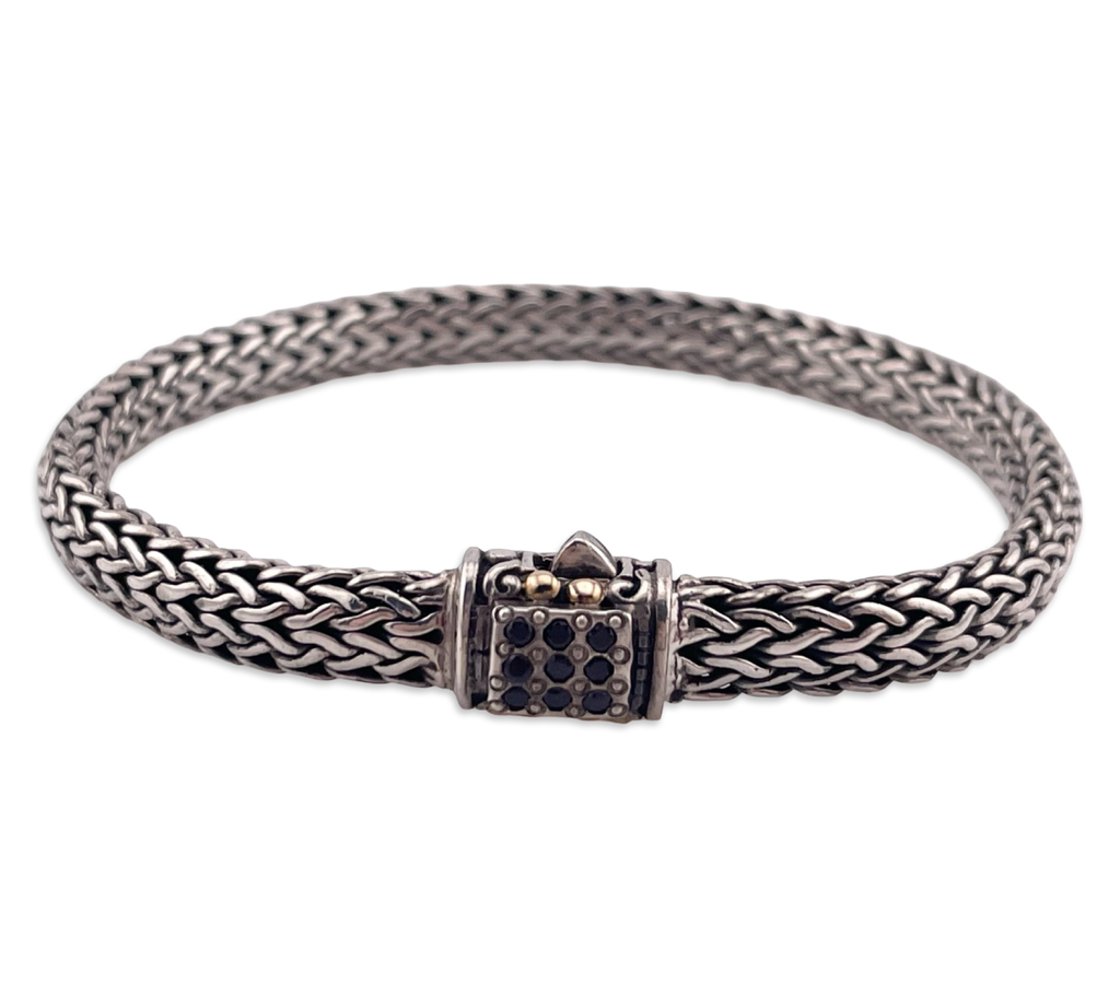 sterling silver & 18k gold sapphire woven wheat link bracelet