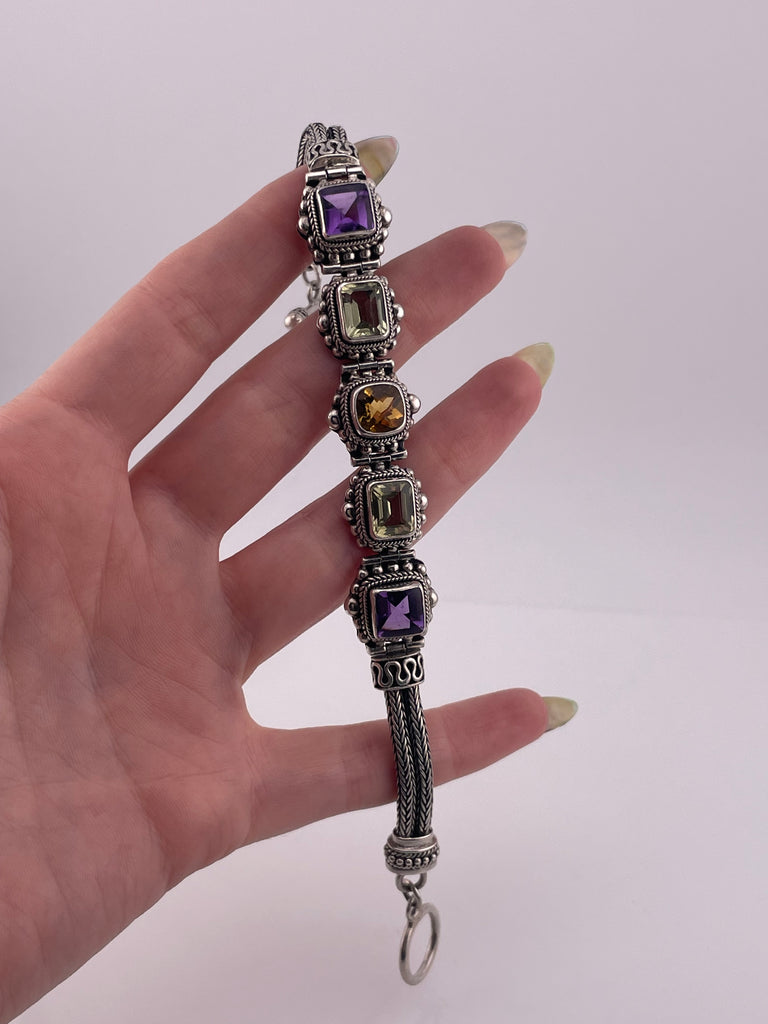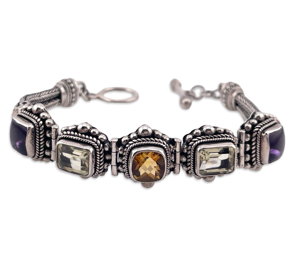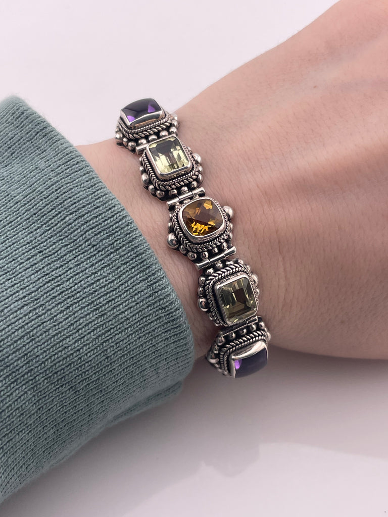 sterling silver 8 1/4" Suarti multi-gemstone link bracelet