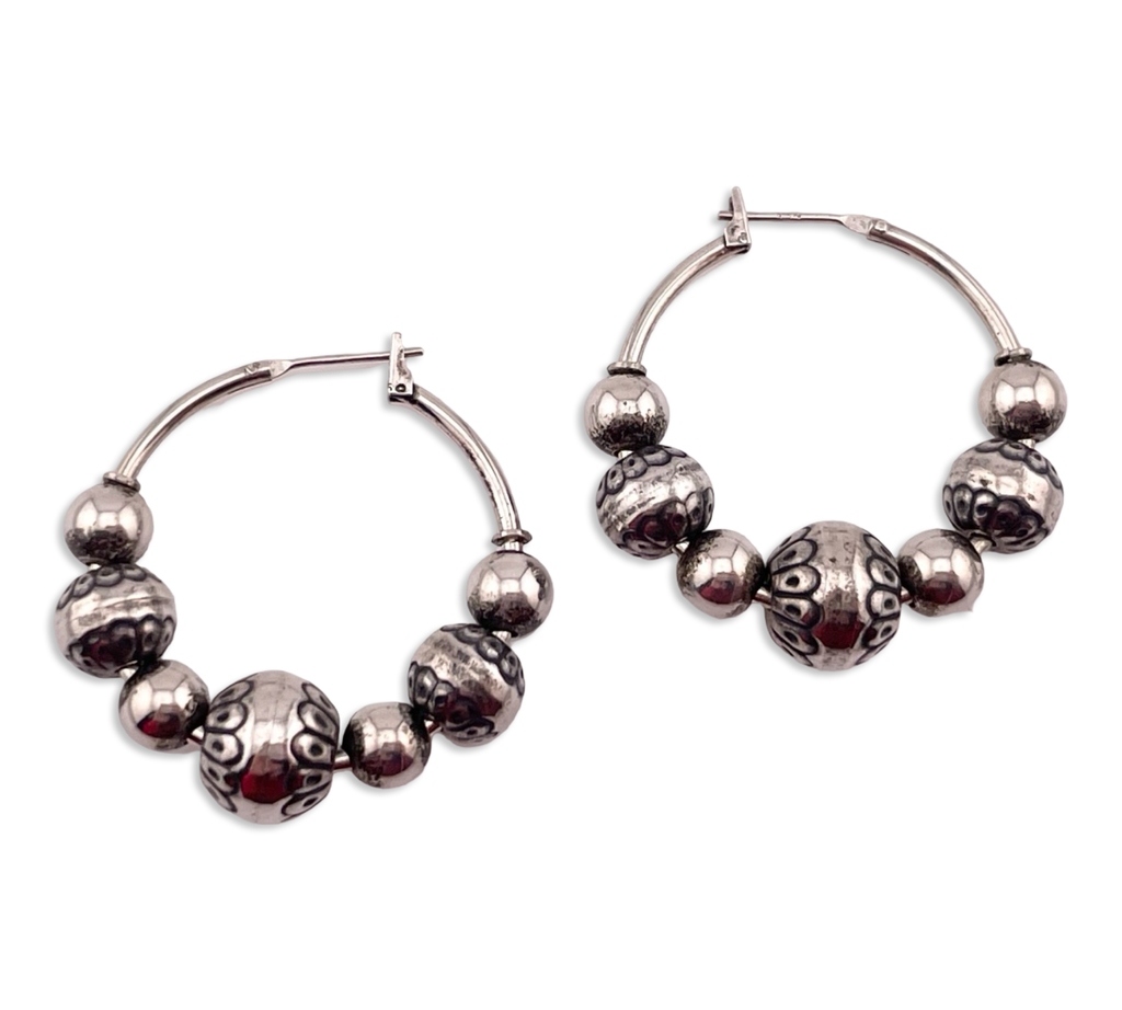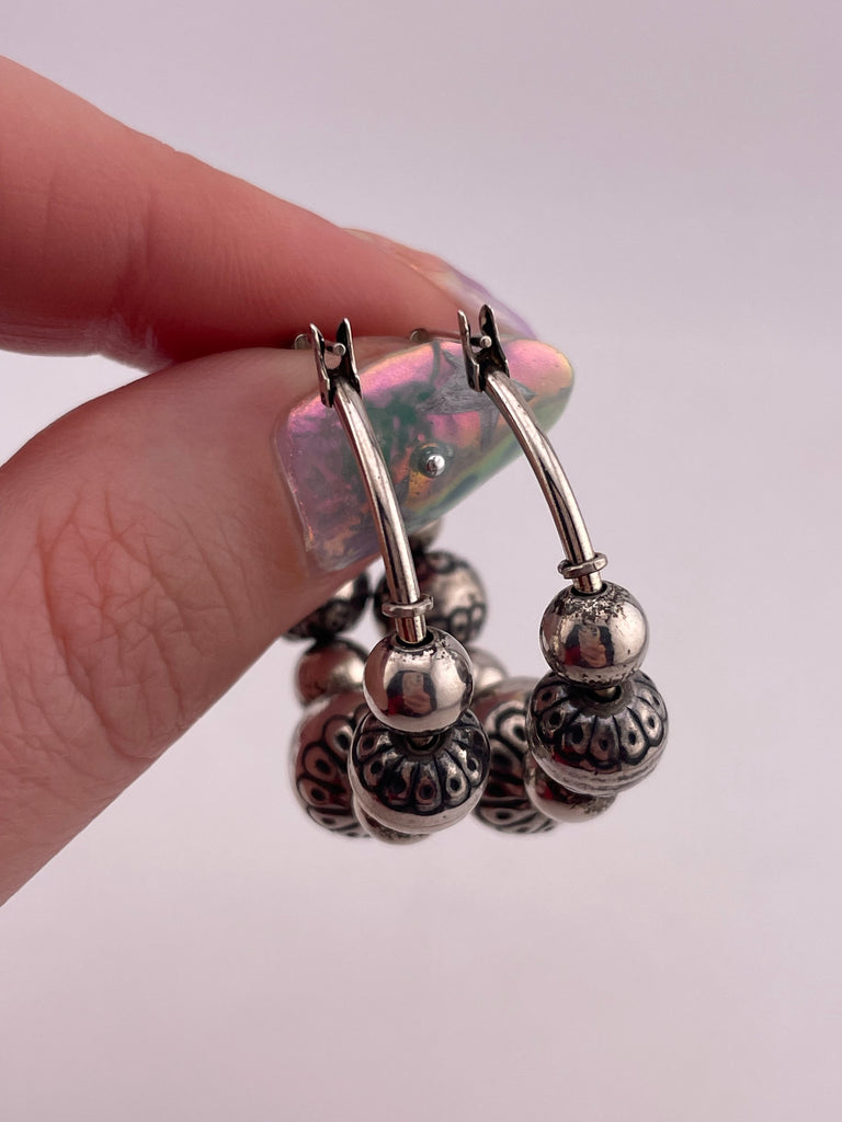 The silver is scratched from wear and storage, as is typical with pre-owned jewelry. This jewelry has tarnishing and patina that may not come off when polished.