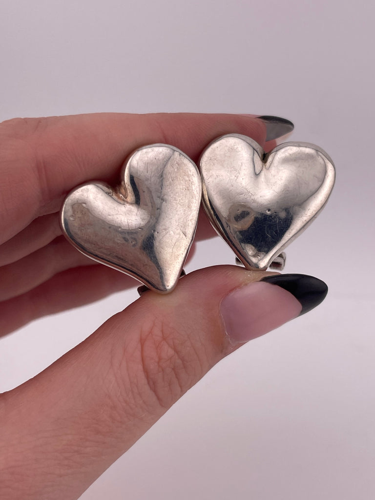sterling silver electroform puffy heart post earrings