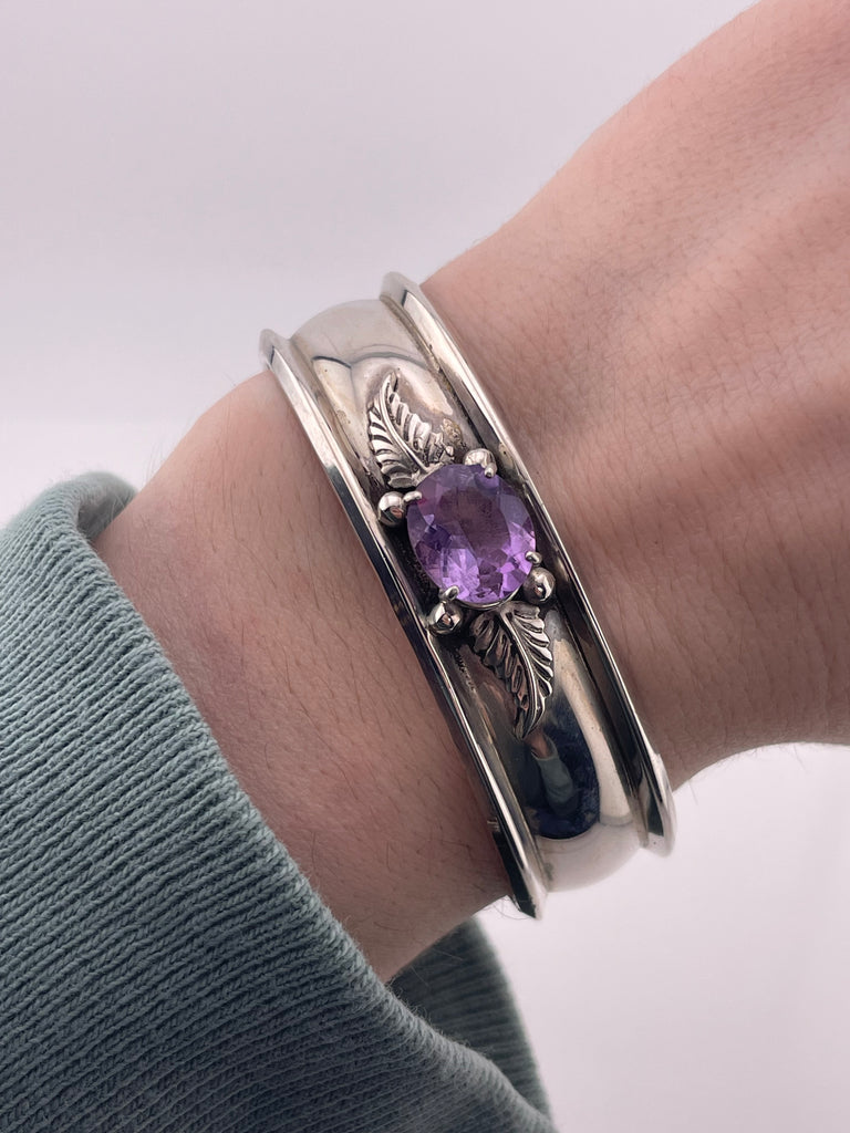 sterling silver faceted amethyst cuff bracelet