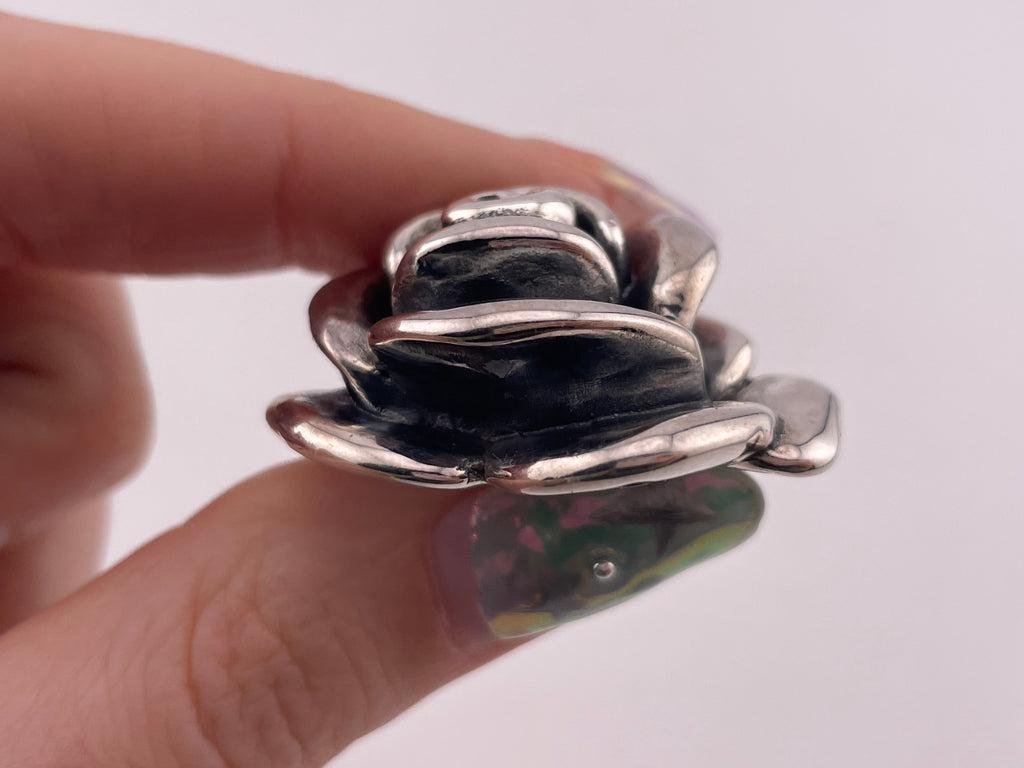 This pendant has scratches to the silver from previous wear, and tarnishing that may not come off when polished.