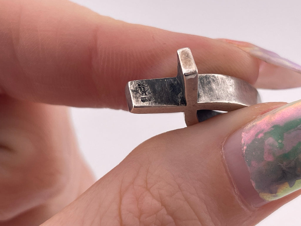 This pendant has scratches to the silver from previous wear, and tarnishing that may not come off when polished.