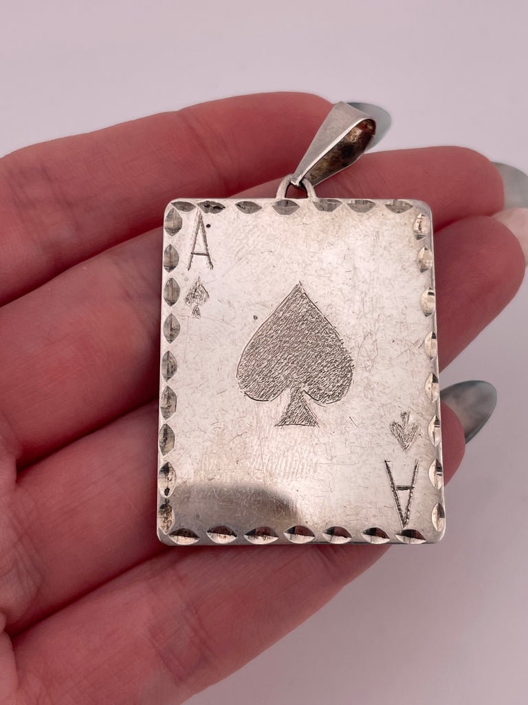 sterling silver large ace of spades card pendant