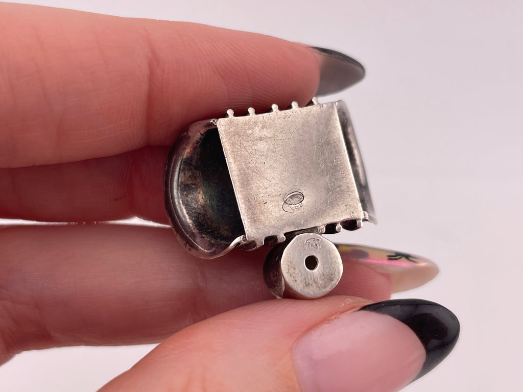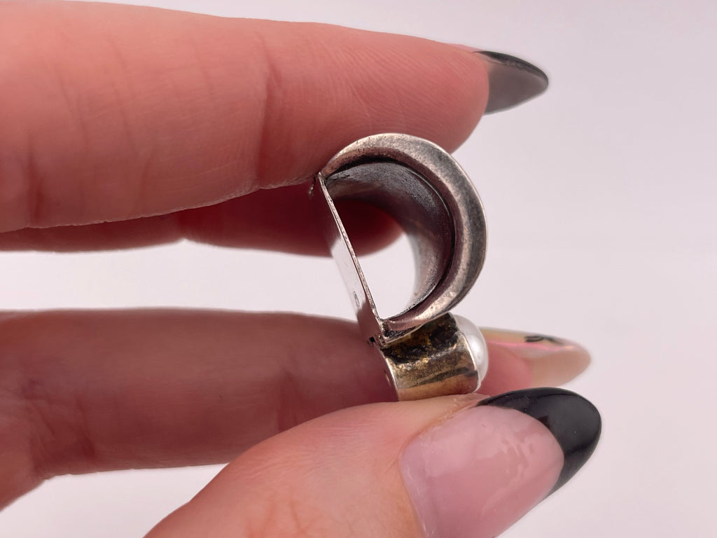 The silver is scratched from wear and storage, as is typical with pre-owned jewelry. This piece of silver has tarnishing and patina that may not come off when polished.