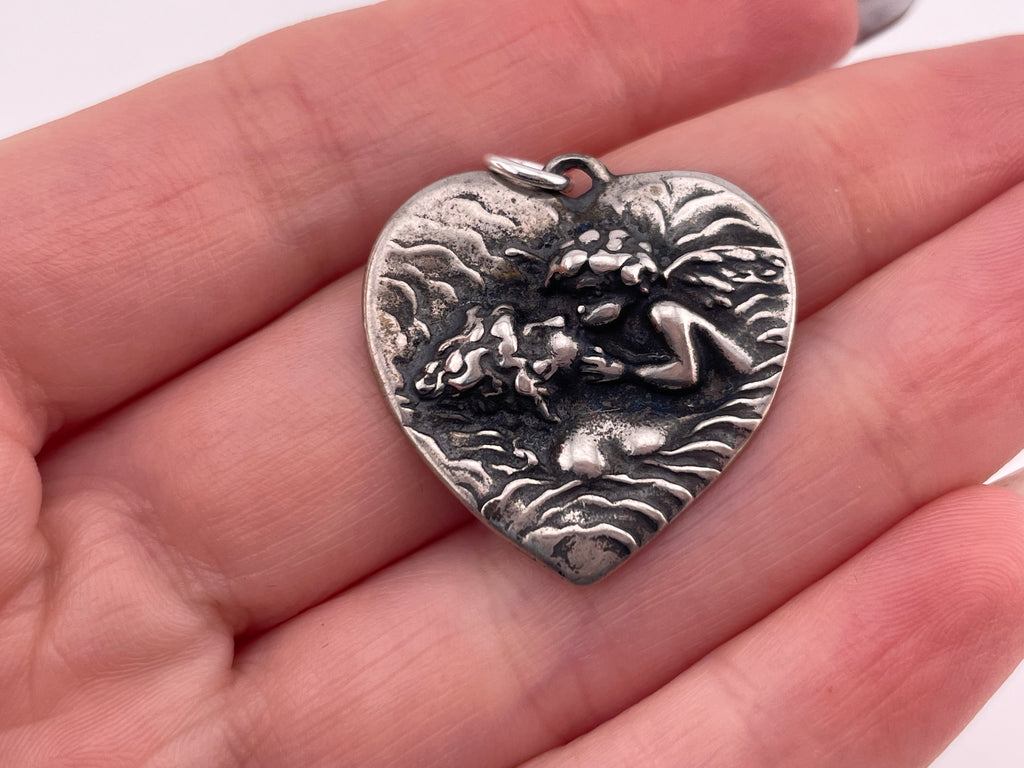 sterling silver kissing cherub heart pendant