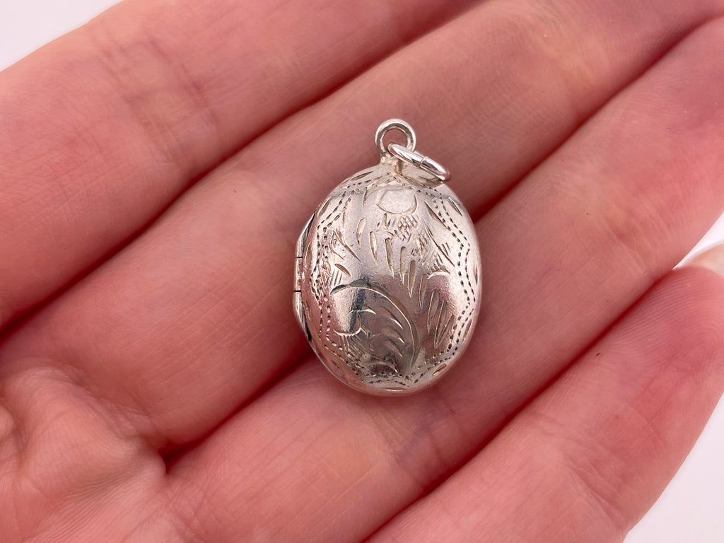 sterling silver oval etched locket pendant