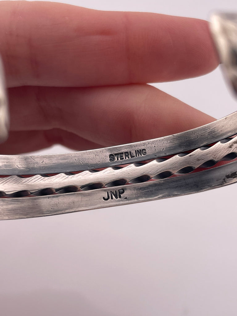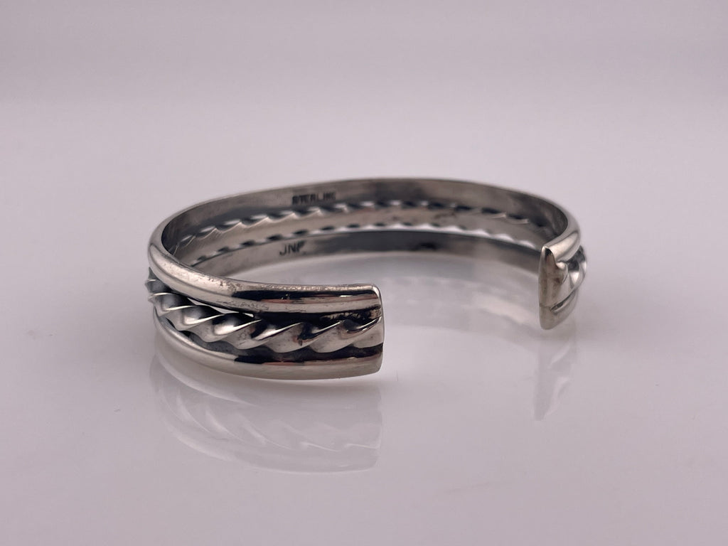 sterling silver signed JNP heavy stoneless twist wire cuff bracelet