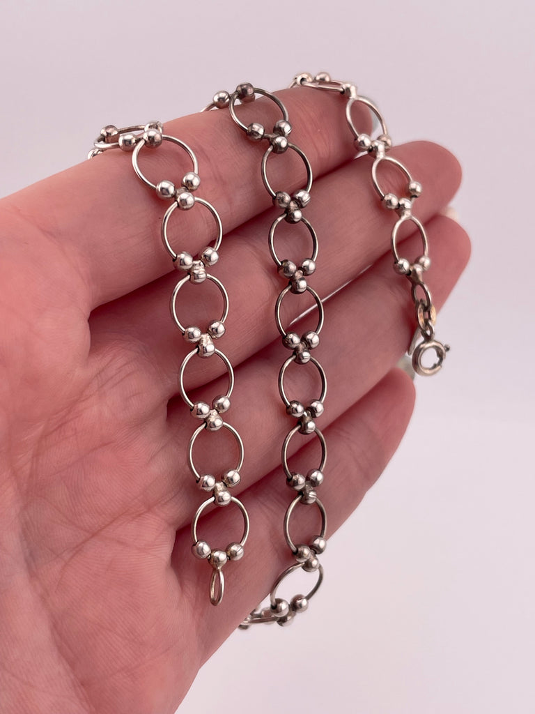 This has scratches to the silver from previous wear, and tarnishing that may not come off when polished.