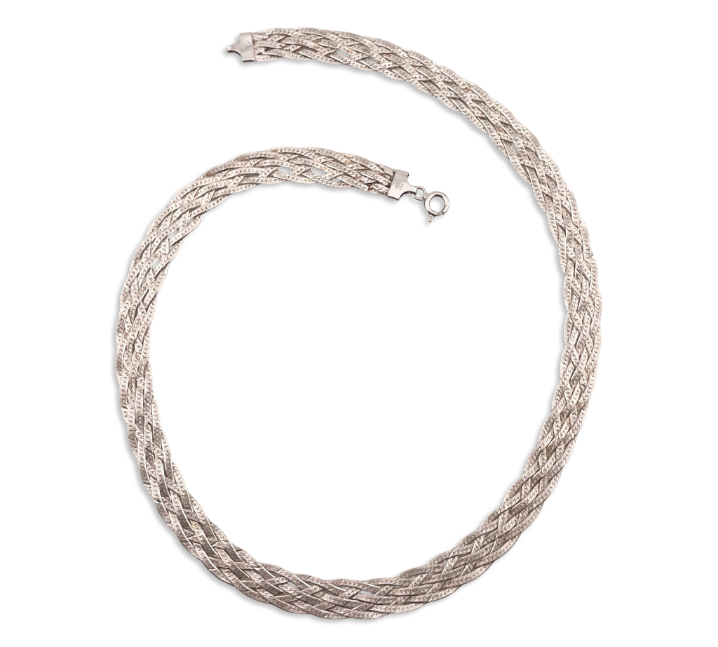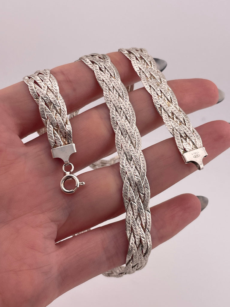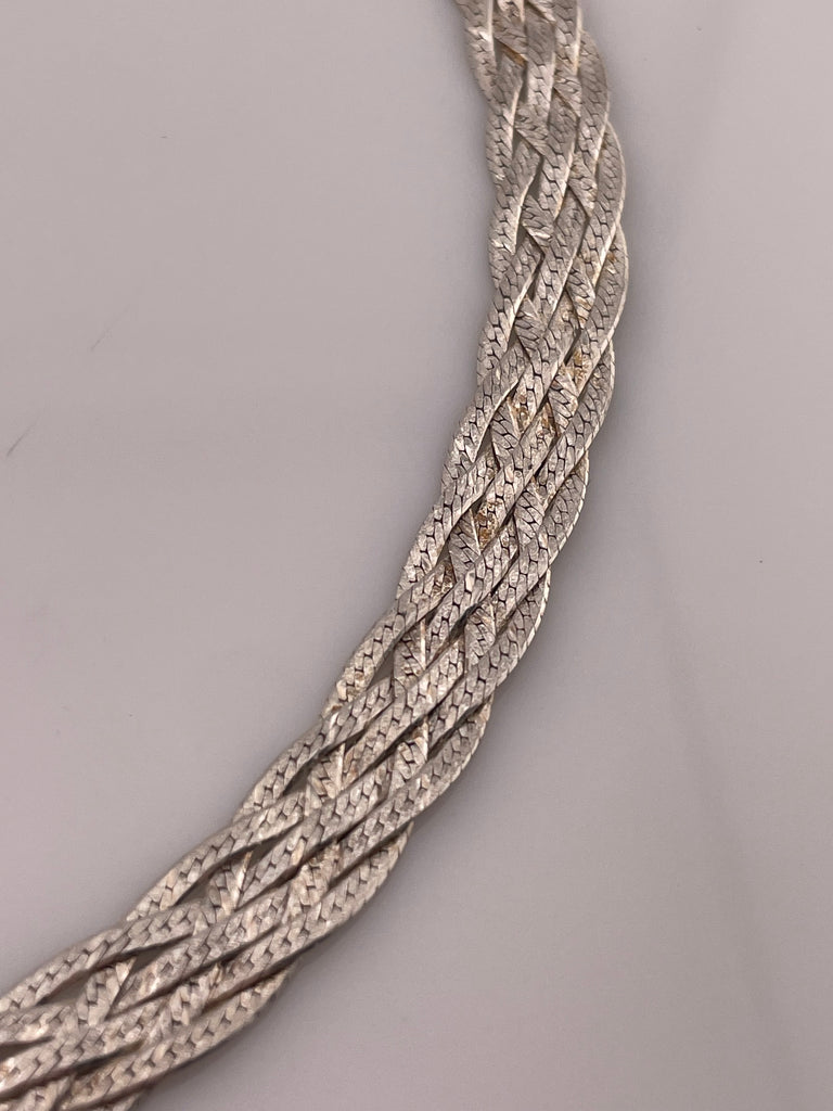 sterling silver 17 3/4" braided herringbone matte finish chain necklace