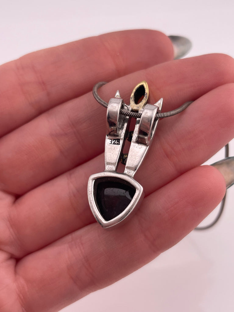 Please note that the stone tests in the garnet region but could also possibly be an amethyst or tourmaline. It is a purple reddish hue depending on the lighting - absolutely stunning!