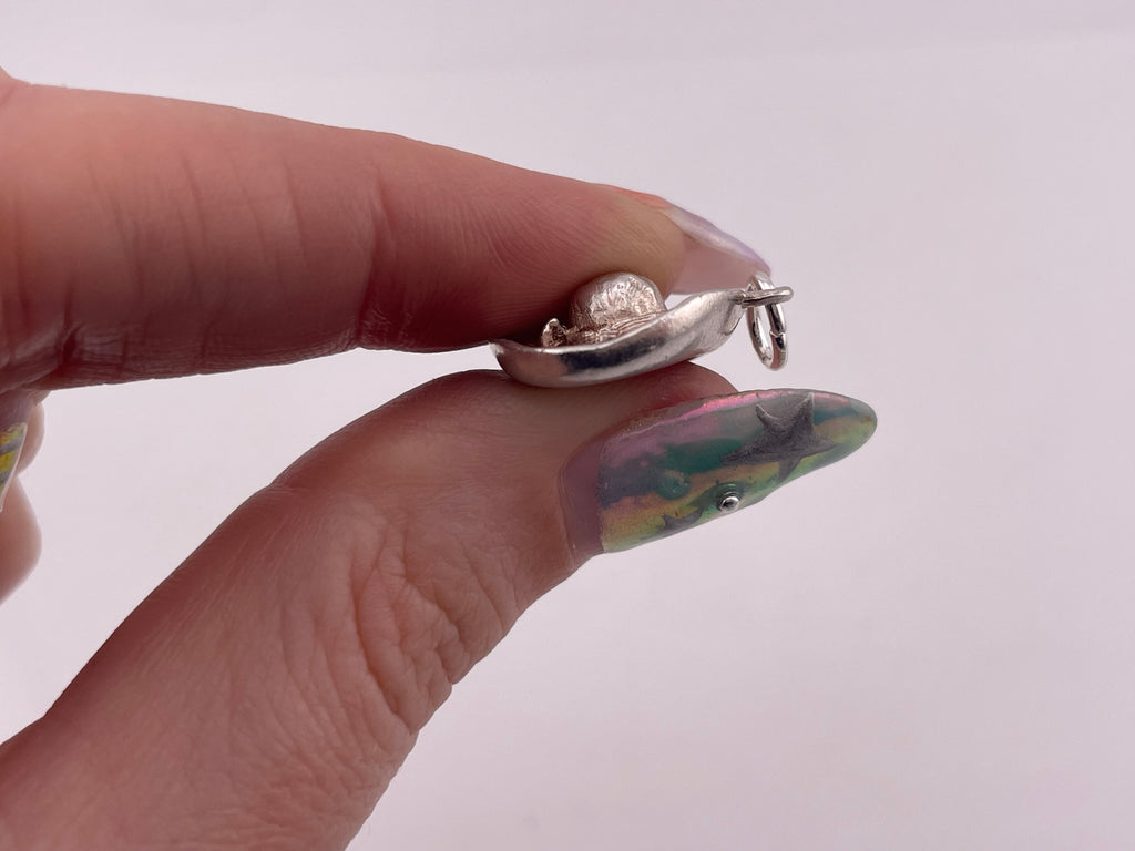 This pendant has scratches to the silver from previous wear, and tarnishing that may not come off when polished.