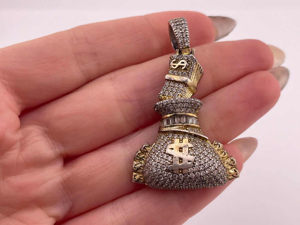 sterling silver gold wash rhinestone money bag pendant ***AS IS***
