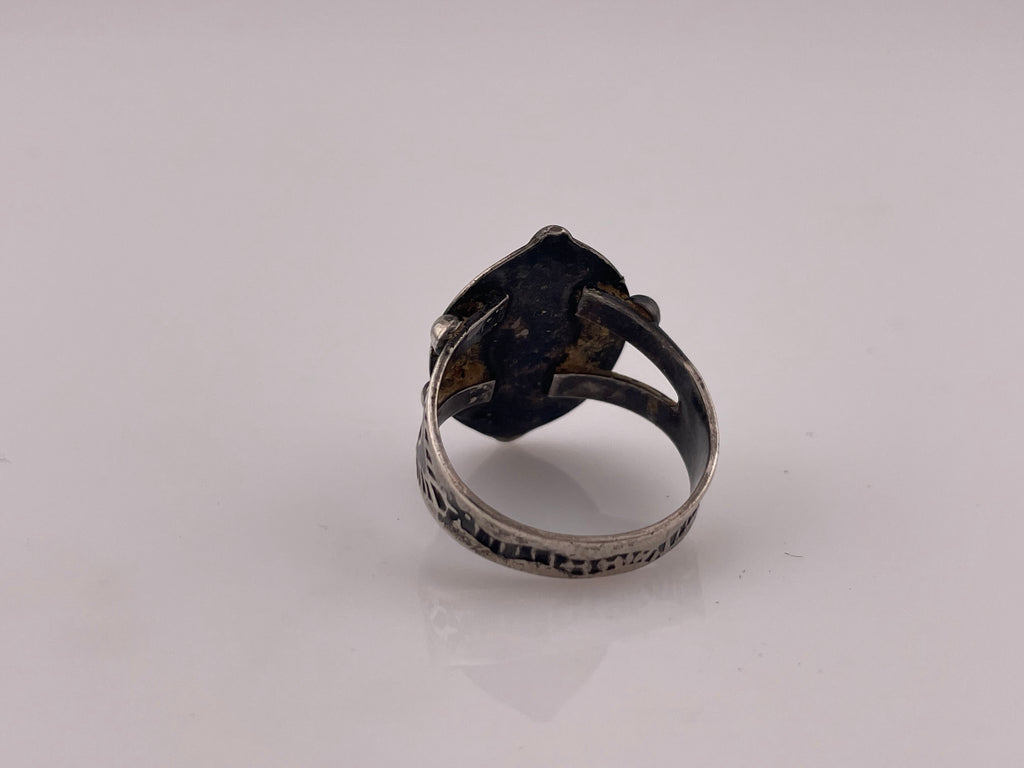 The silver is scratched from wear and storage, as is typical with pre-owned jewelry. This ring has tarnishing and patina that may not come off when polished.