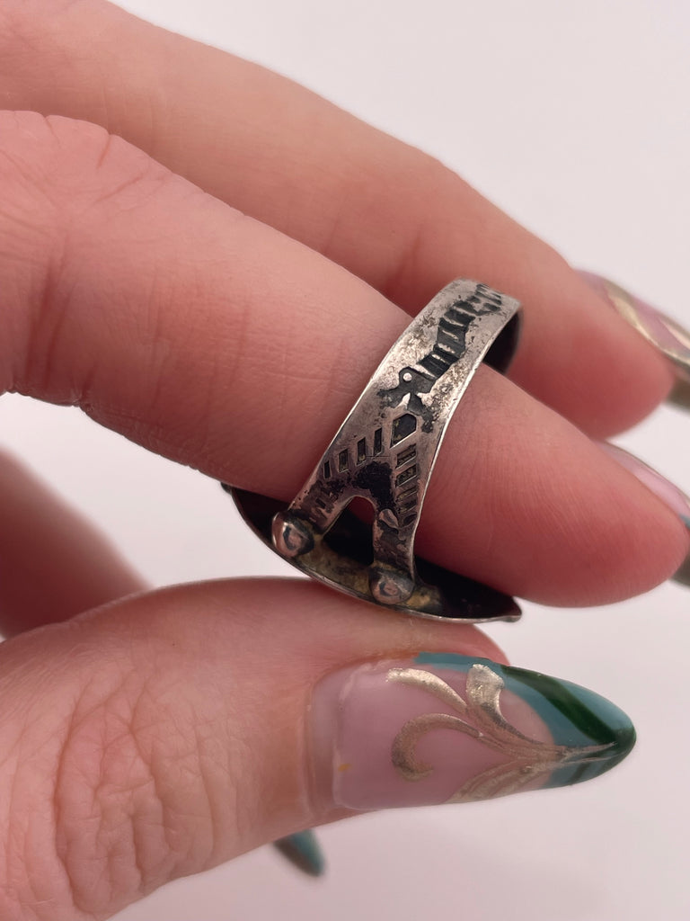 size 7.75 sterling silver Fred Harvey era green turquoise snake ring