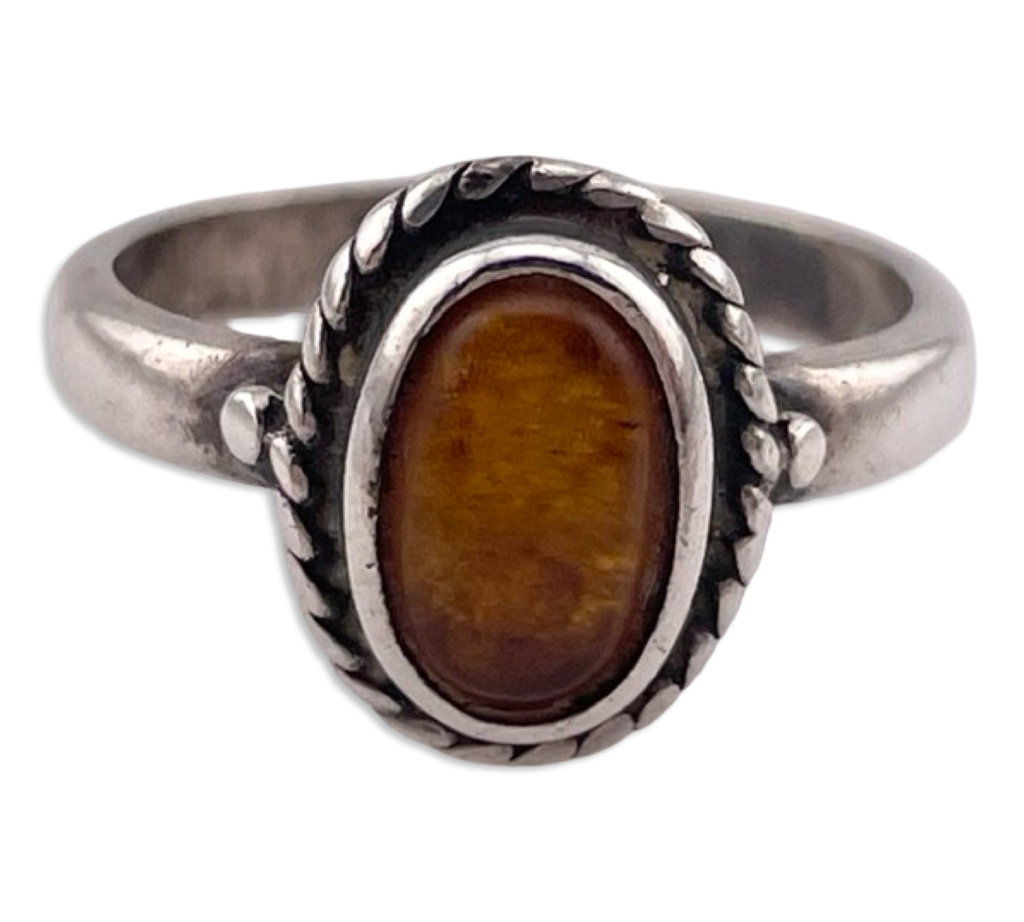 size 3.5 sterling silver synthetic amber ring
