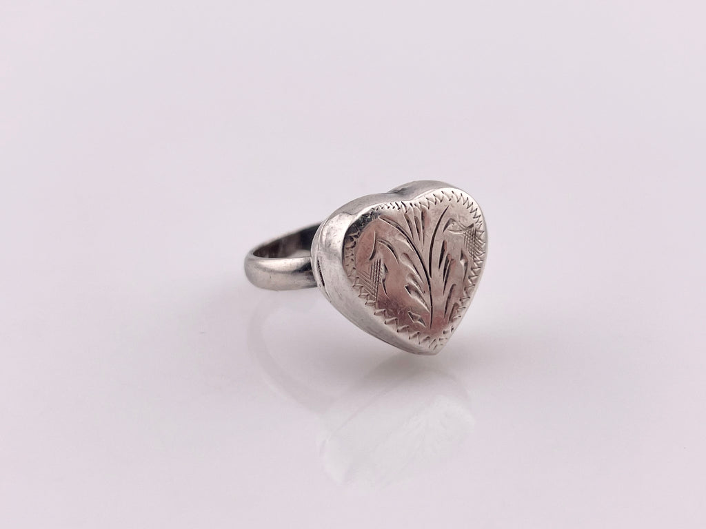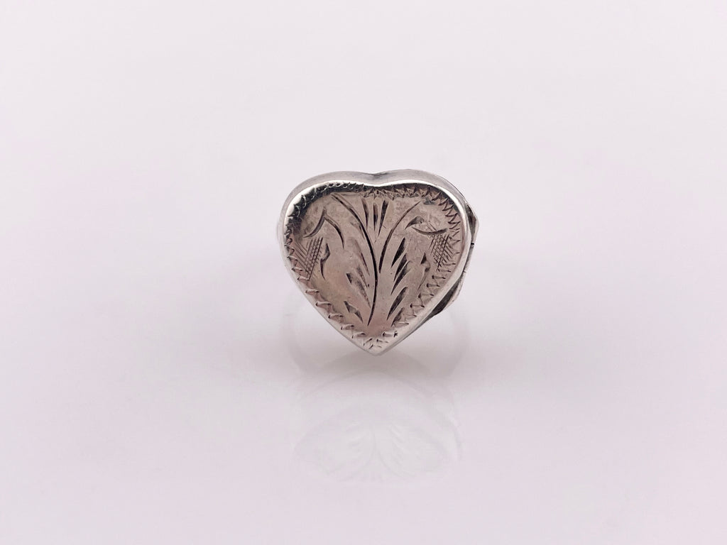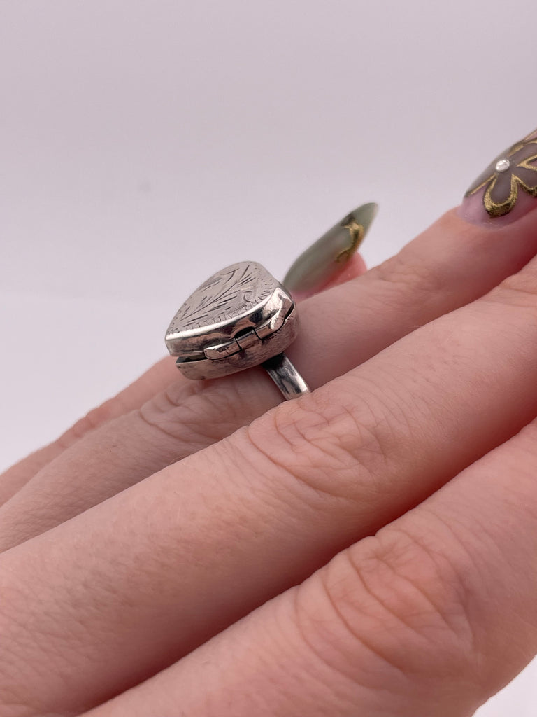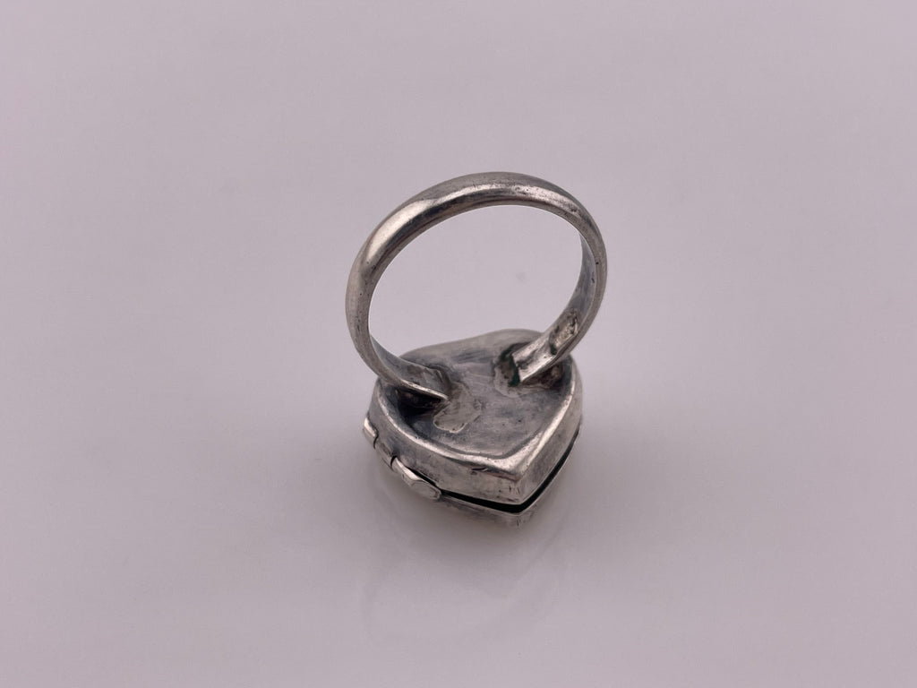 The silver is scratched from wear and storage, as is typical with pre-owned jewelry. This ring has tarnishing and patina that may not come off when polished.