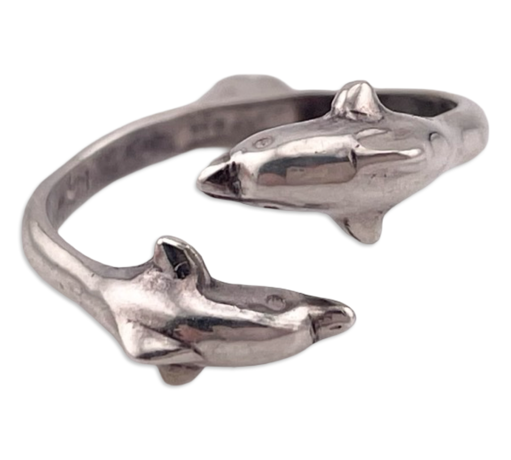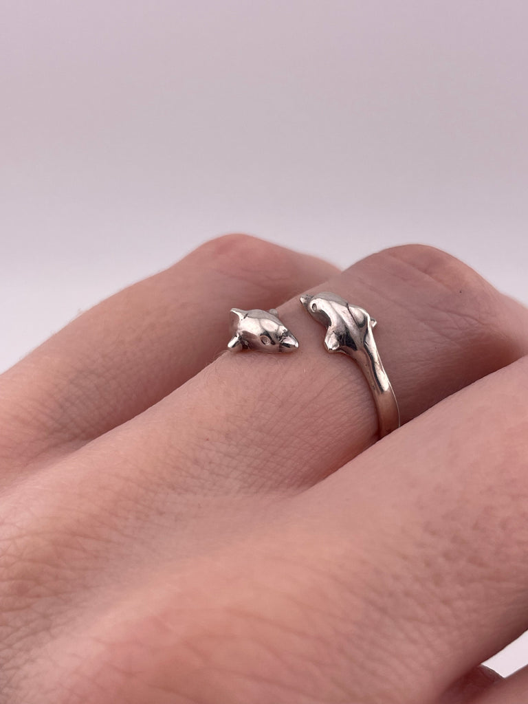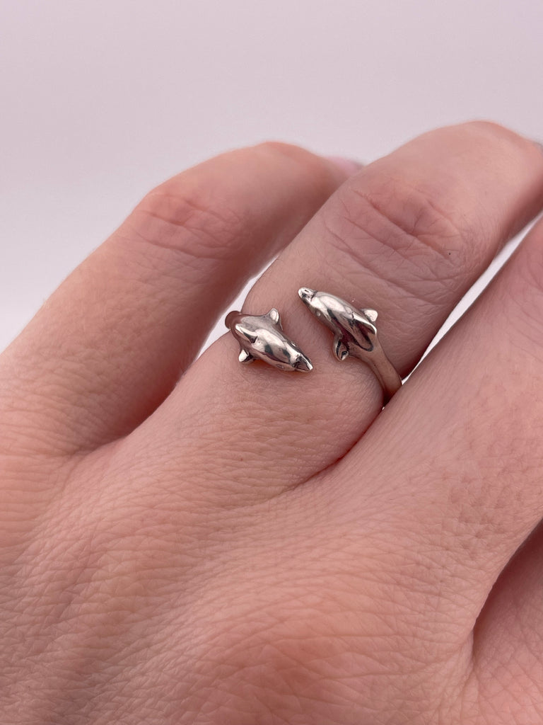 size 6.5 sterling silver double dolphin bypass ring