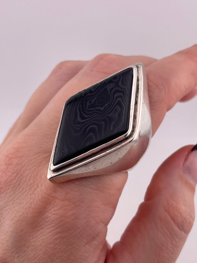 size 7.75 950 silver designer Barry Brinker chunky psilomelane ring