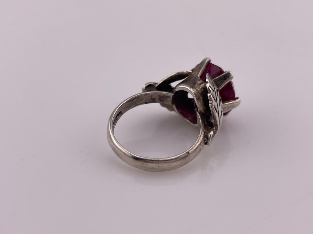 The silver is scratched from wear and storage, as is typical with pre-owned jewelry. This ring has tarnishing and patina that may not come off when polished.