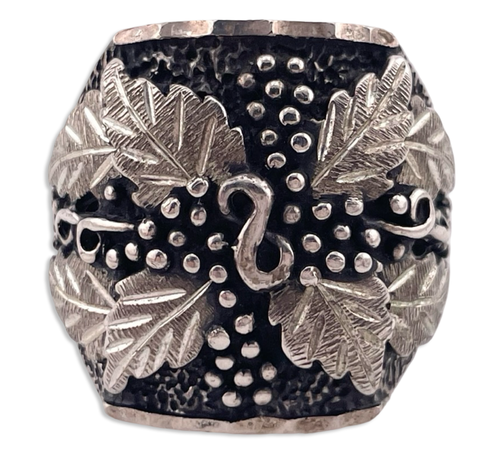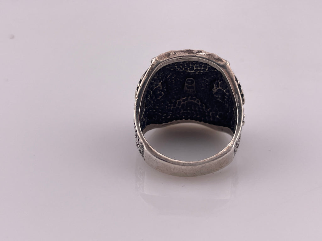 The silver is scratched from wear and storage, as is typical with pre-owned jewelry. This ring has tarnishing and patina that may not come off when polished.