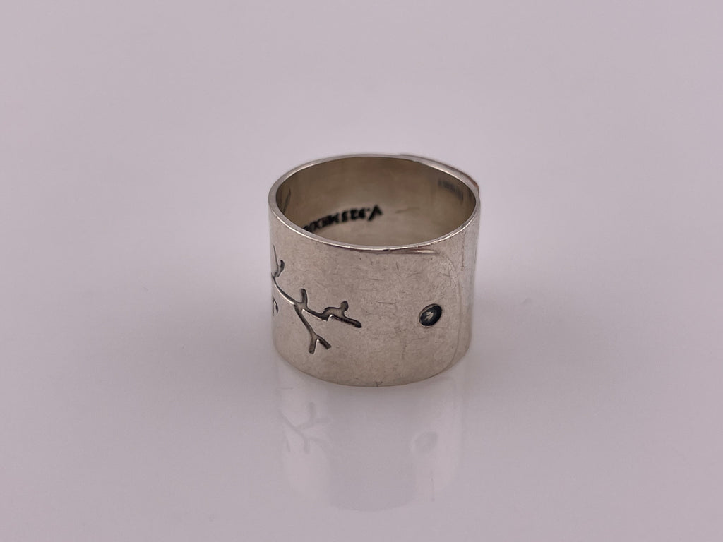 The silver is scratched from wear and storage, as is typical with pre-owned jewelry. This ring has tarnishing and patina that may not come off when polished.