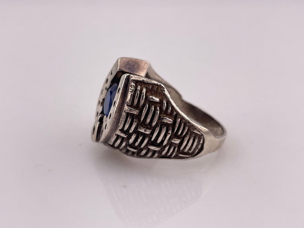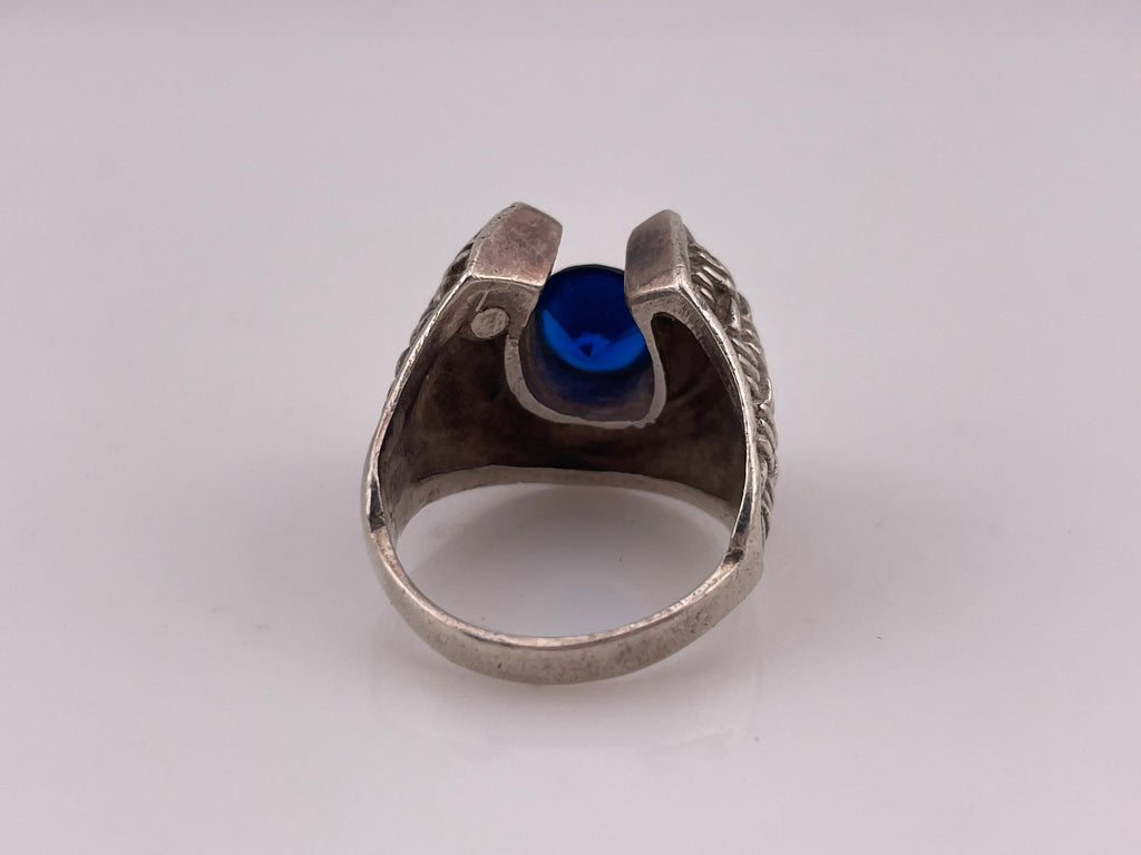 size 11.5 sterling silver faceted blue spinel horseshoe ring