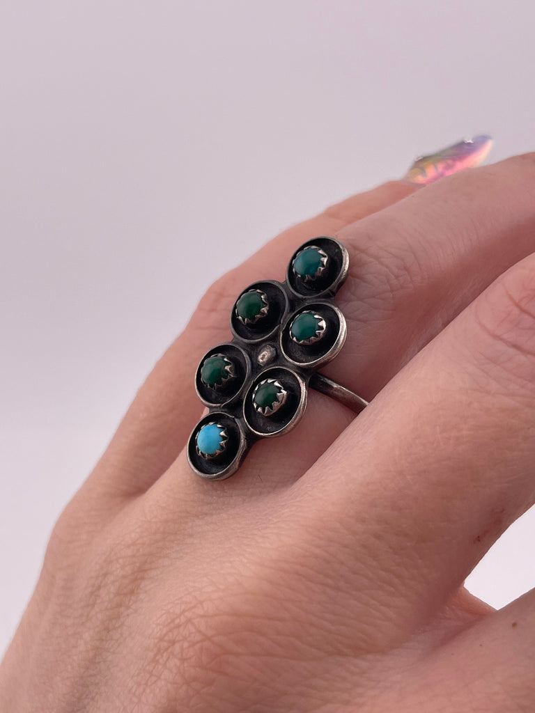size 6.5 sterling silver turquoise snake eye pattern ring