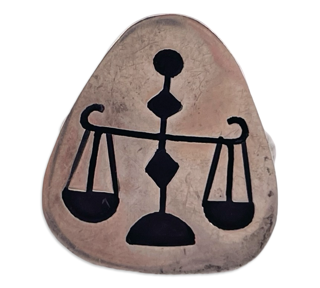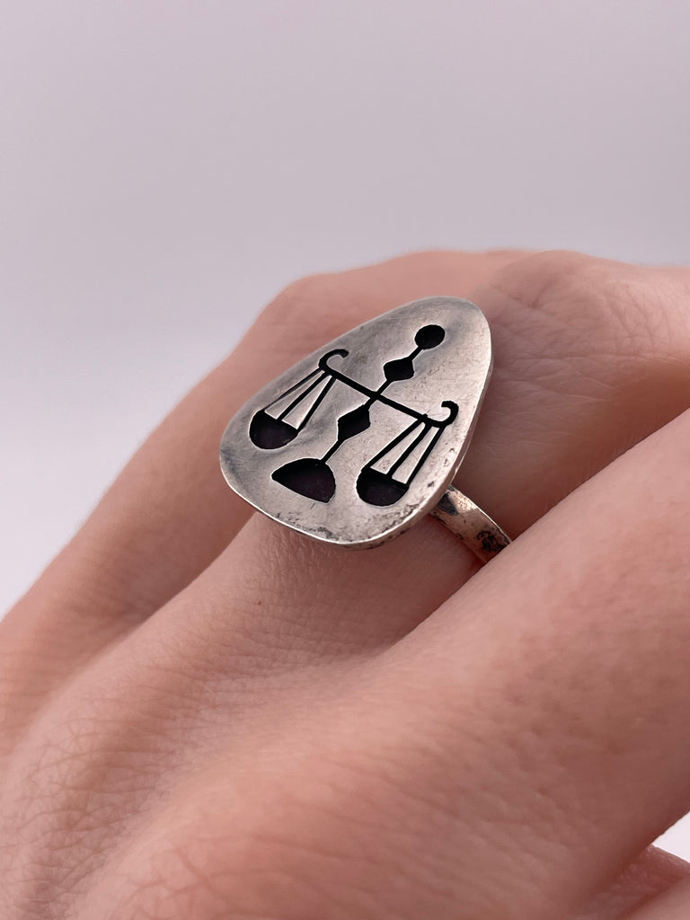 size 6.5 sterling silver Libra the Scales zodiac adjustable band ring