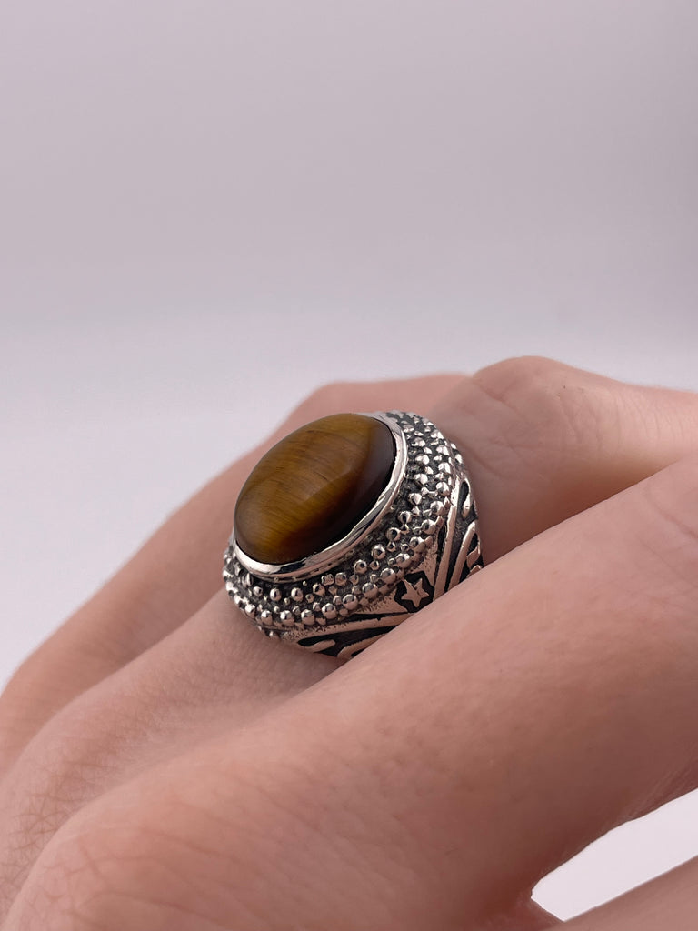 size 5.75 sterling silver tiger eye star ring